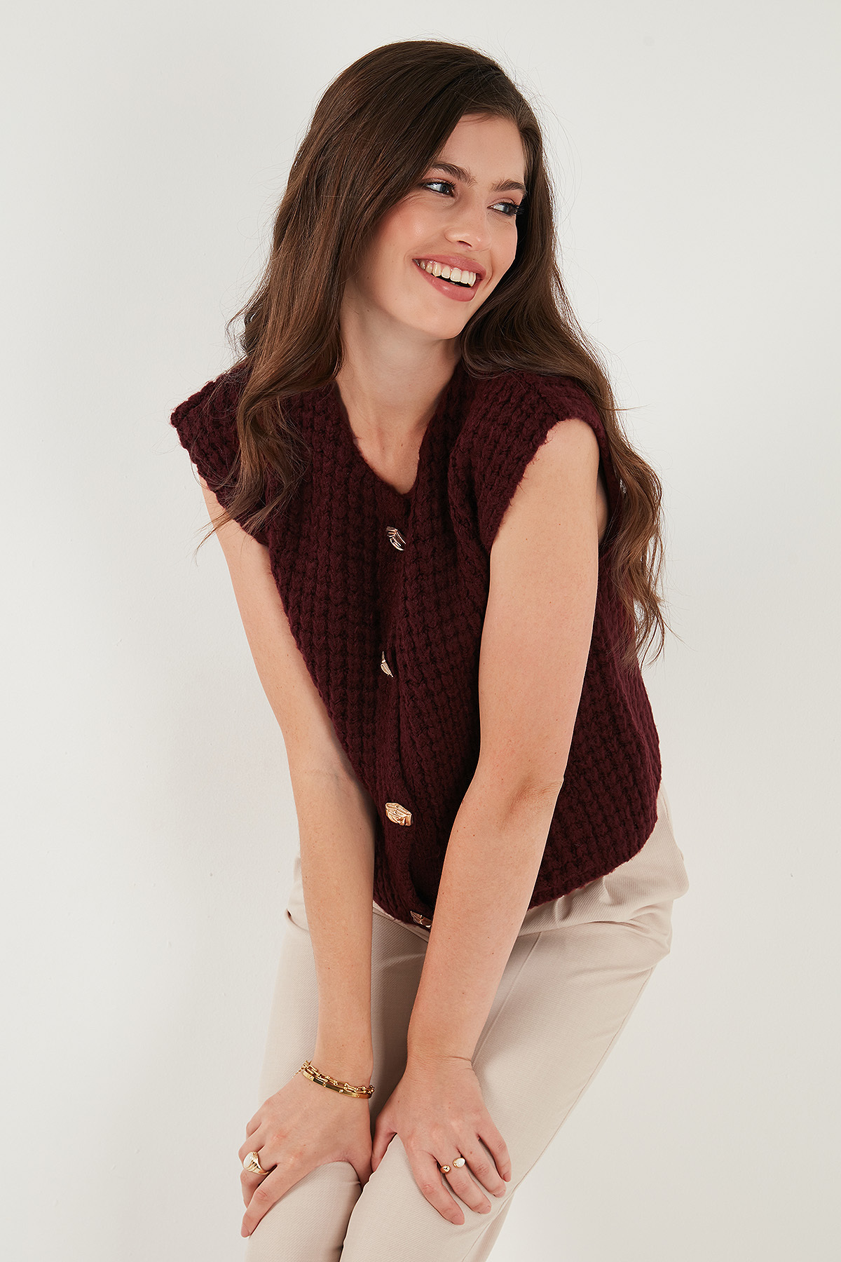 Premium Oversize Fit Bisiklet Yaka Düğmeli Örgü Yelek YELEK 680YL1416 Premium Oversize Fit Bisiklet Yaka Düğmeli Örgü Yelek YELEK 680YL1416 L