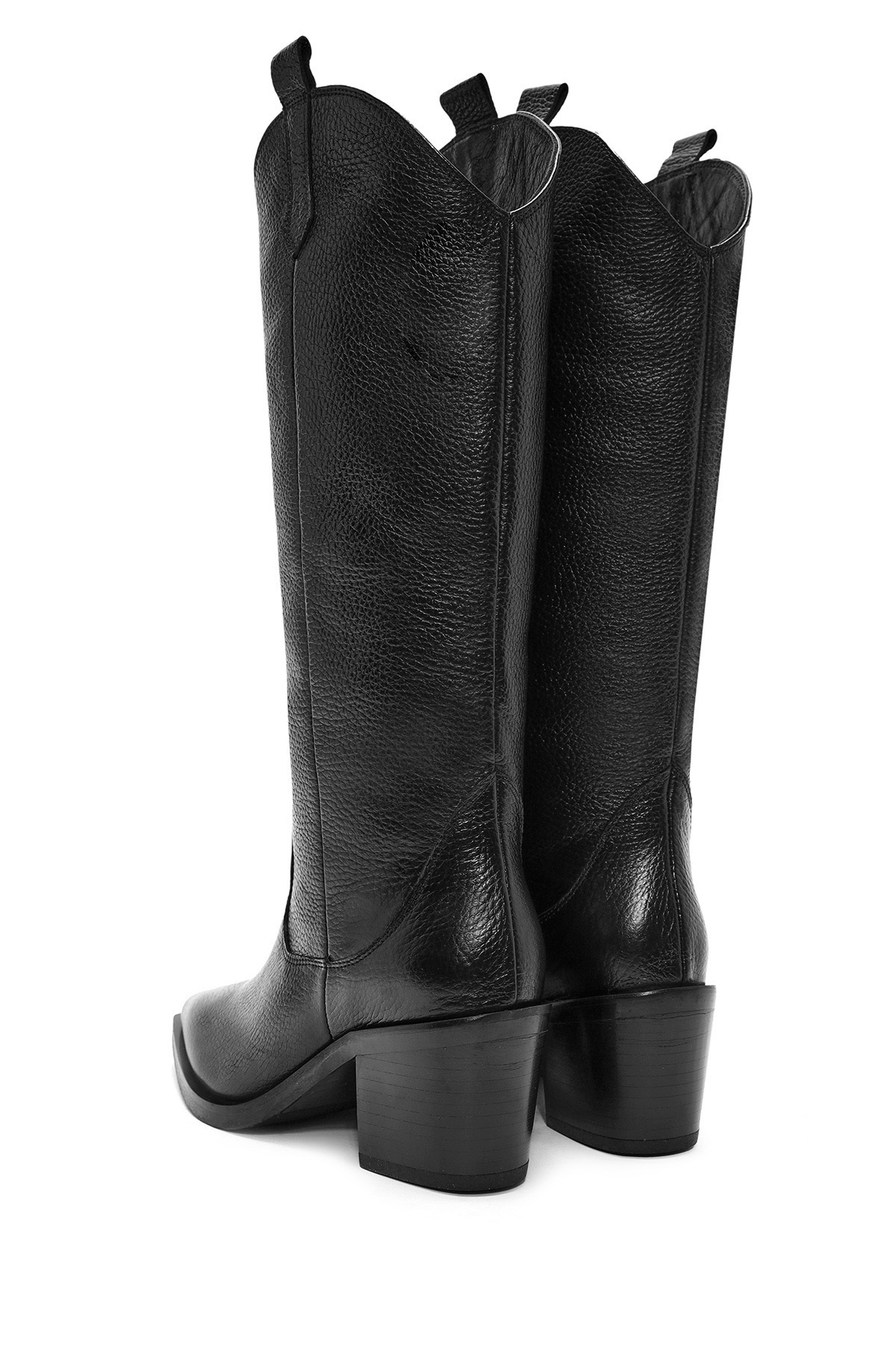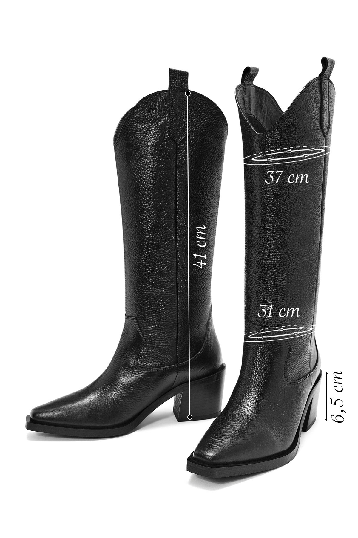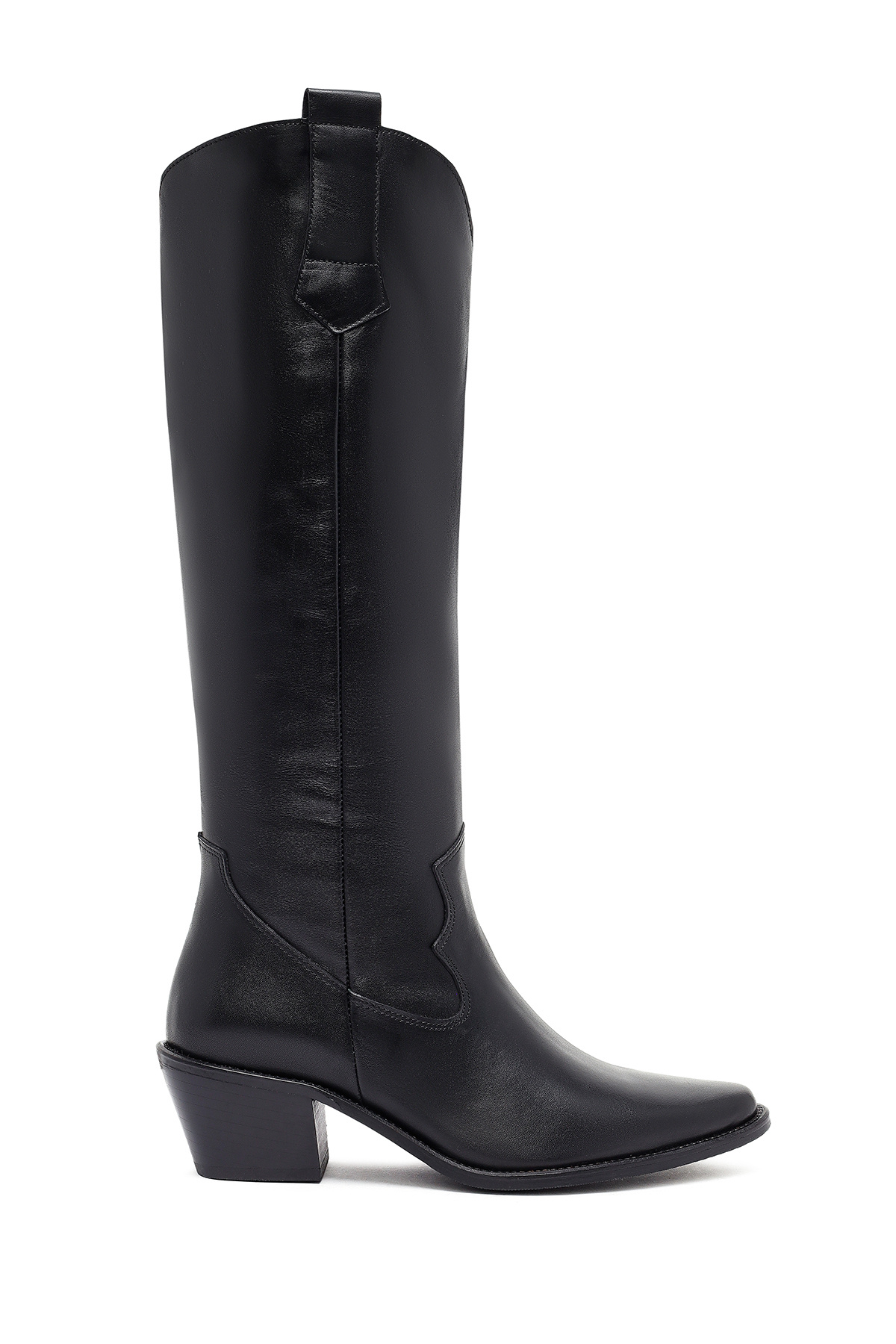 Kadın Siyah Kalın Topuklu Deri Kovboy Çizme 25WFD1525FT Kadın Siyah Kalın Topuklu Deri Kovboy Çizme 25WFD1525FT 40