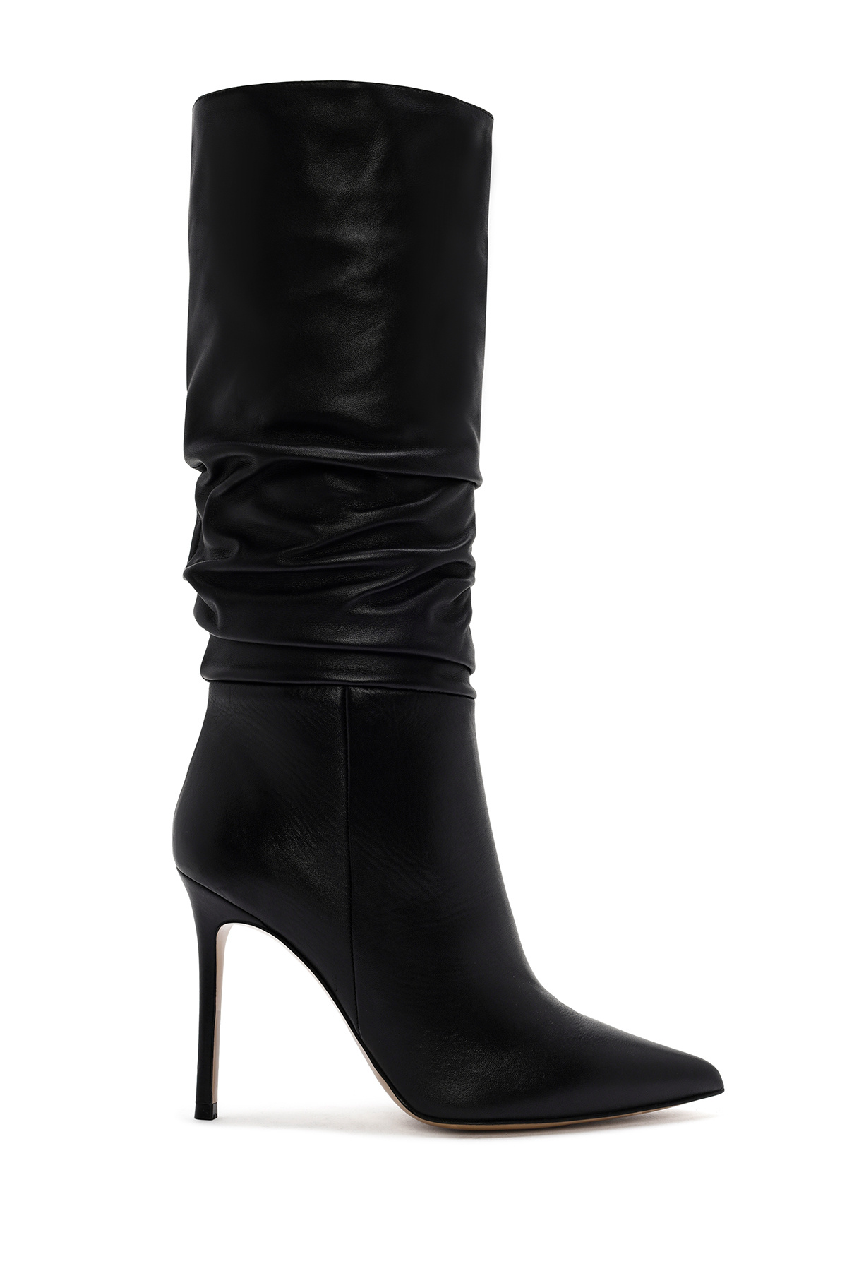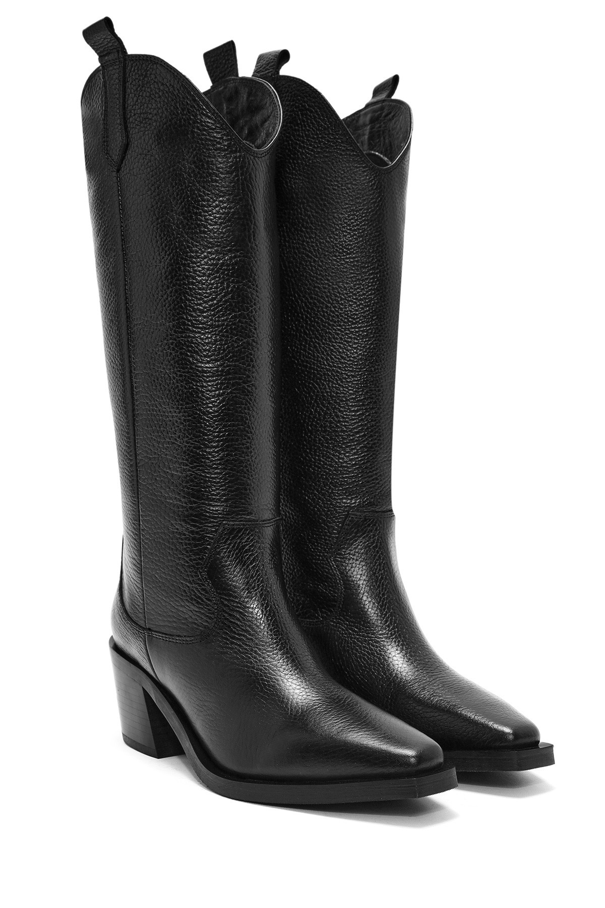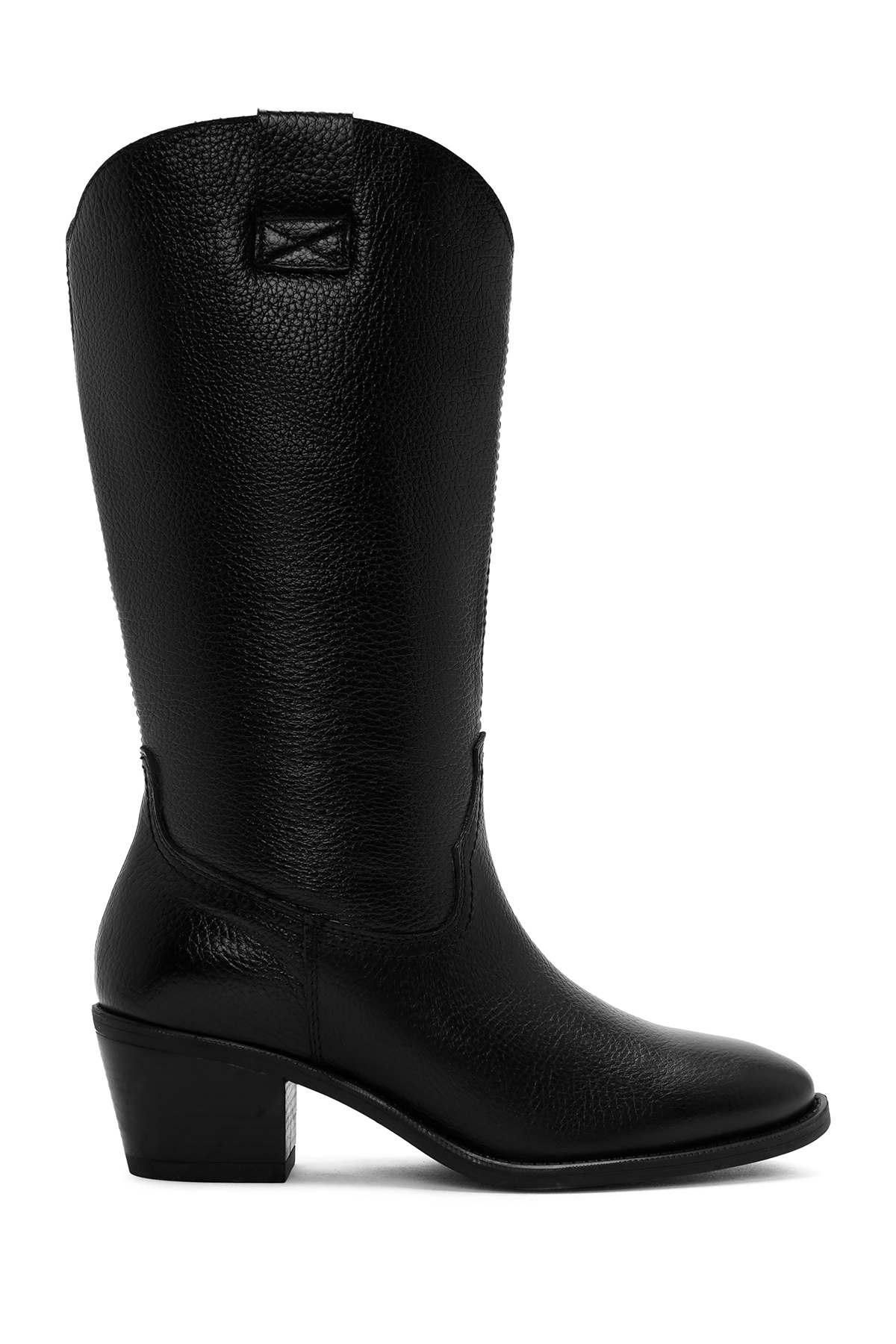 Kadın Siyah Kalın Topuklu Deri Kovboy Çizme 25WFD1525FT Kadın Siyah Kalın Topuklu Deri Kovboy Çizme 25WFD1525FT 40