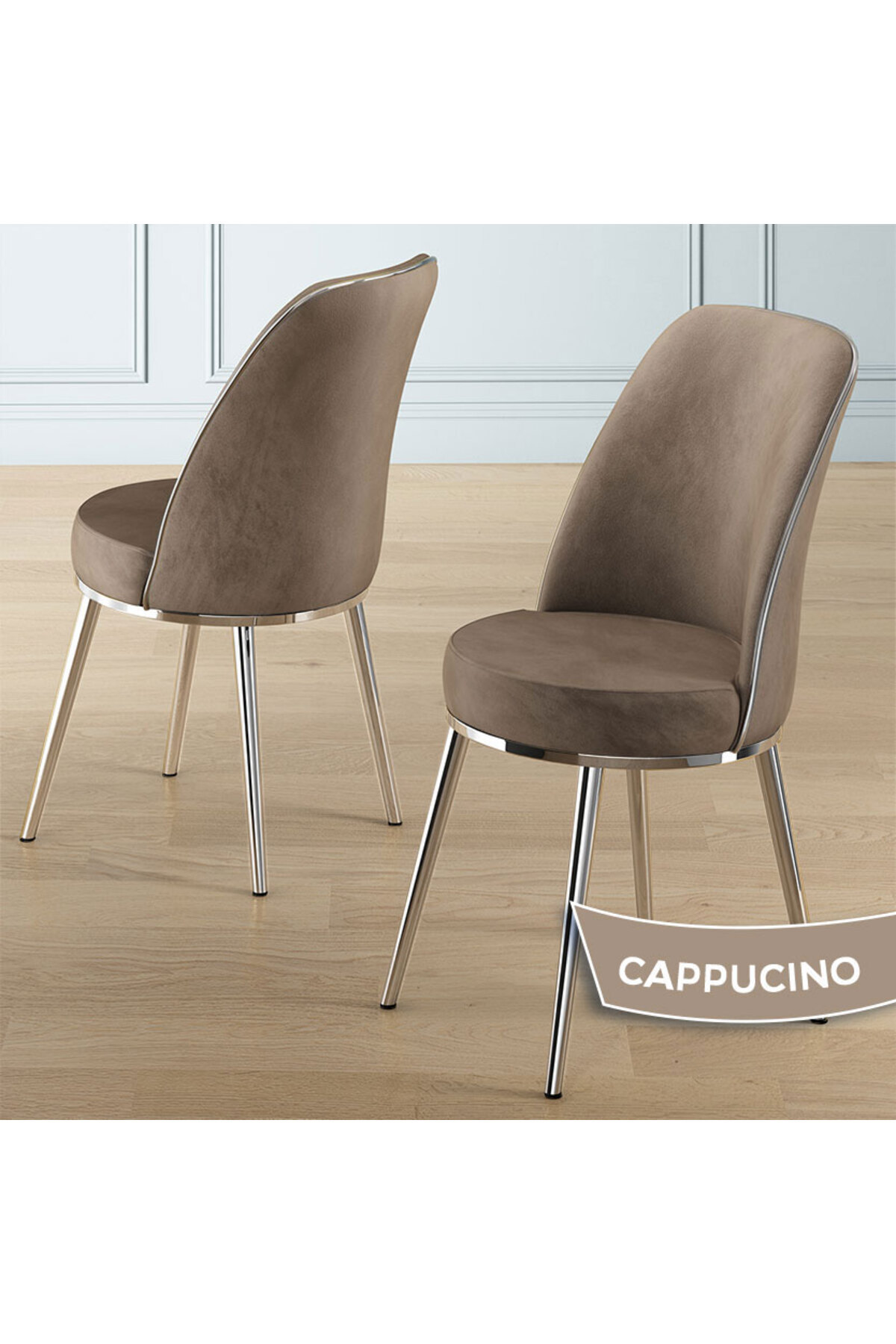 Vals Serisi 80x130 Lak Panel Beyaz Mermer Desen Masa Takımı Krom Ayaklı 4 Cappucino Sandalye Vals Serisi 80x130 Lak Panel Beyaz Mermer Desen Masa Takımı Krom Ayaklı 4 Cappucino Sandalye 22VLS01BYZMR04GLD تک سایز