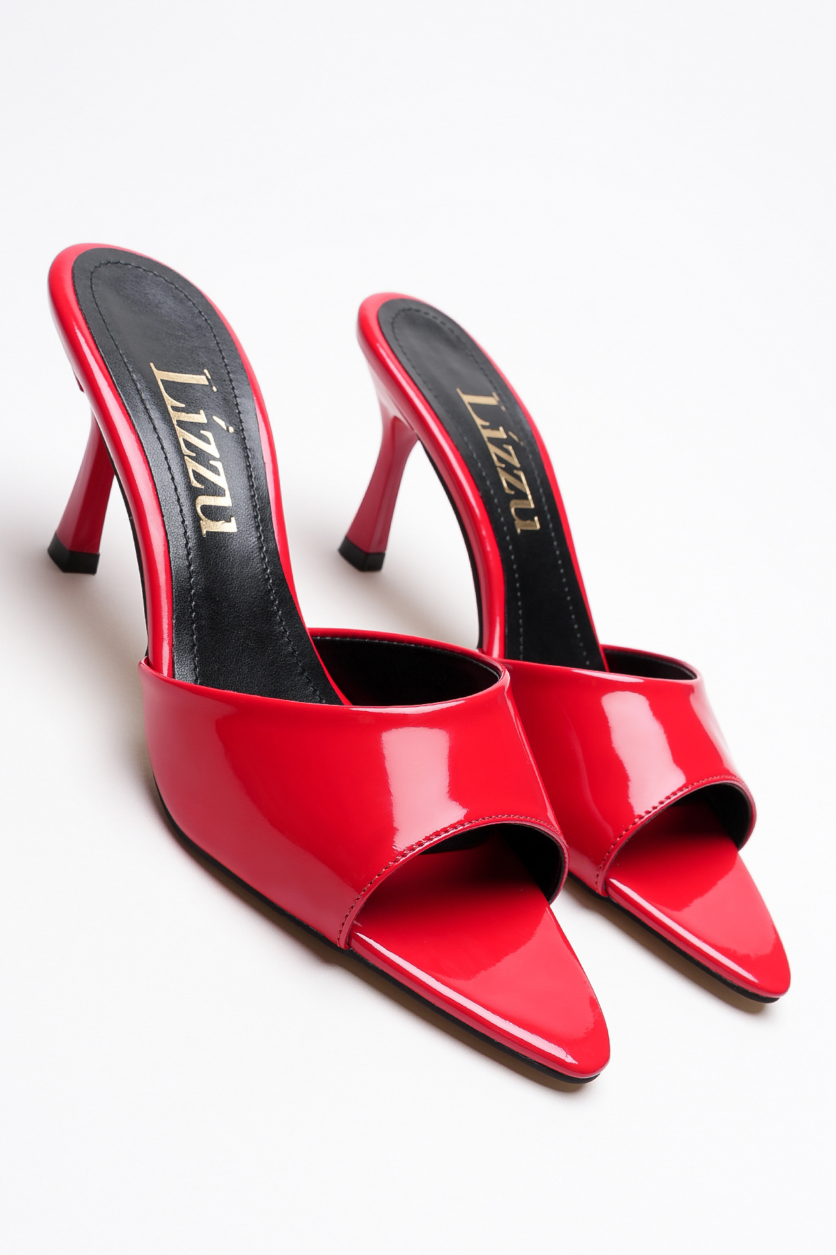 Kadın Sivri Burun Açık Topuklu Terlik Leni Kırmızı Rugan Kadın Sivri Burun Açık Topuklu Terlik Leni Kırmızı Rugan H132 40
