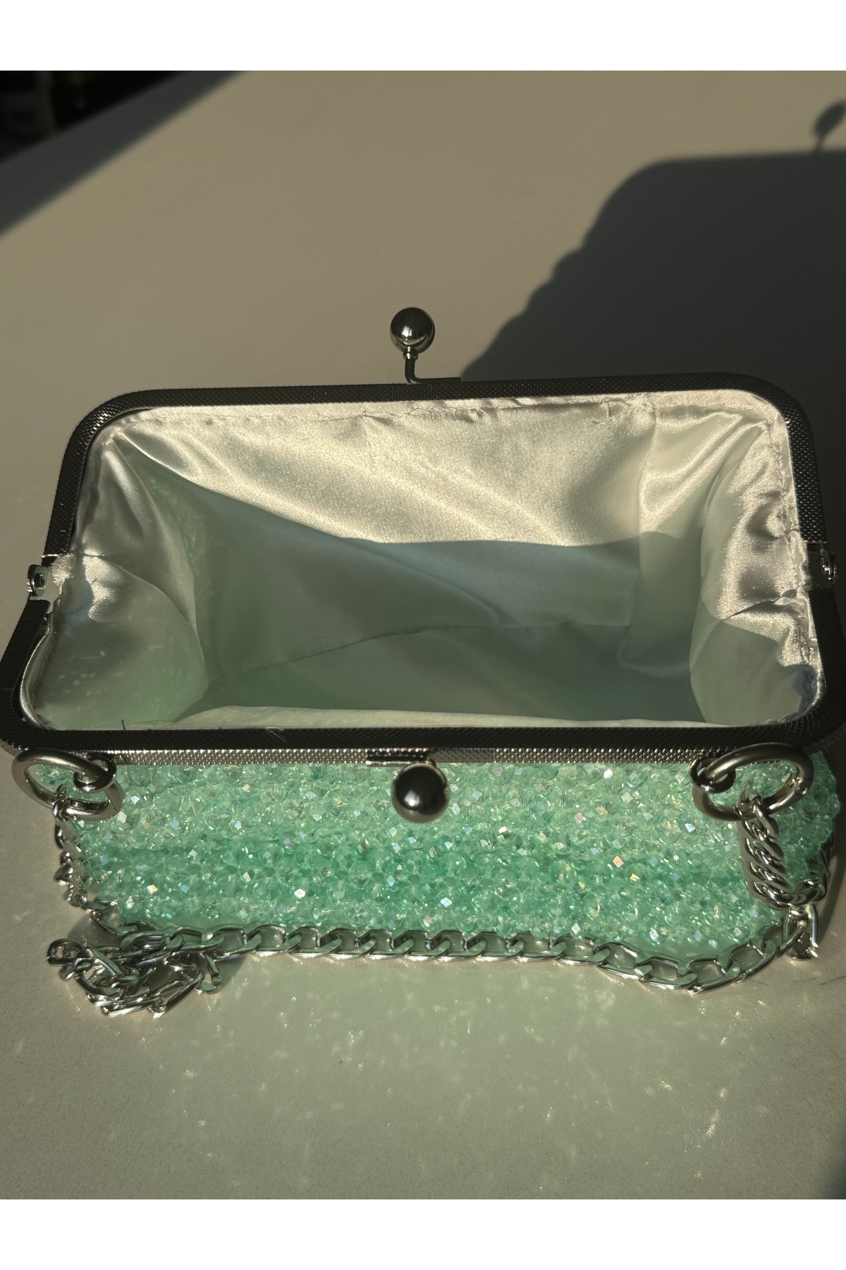 SU YEŞİLİ KRİSTAL PARLAK TAŞLARLA İŞLENMİŞ KLİPSLİ İÇİ ASTARLI TASARIM ÇANTA SU YEŞİLİ KRİSTAL PARLAK TAŞLARLA İŞLENMİŞ KLİPSLİ İÇİ ASTARLI TASARIM ÇANTA BMK346TK Standart