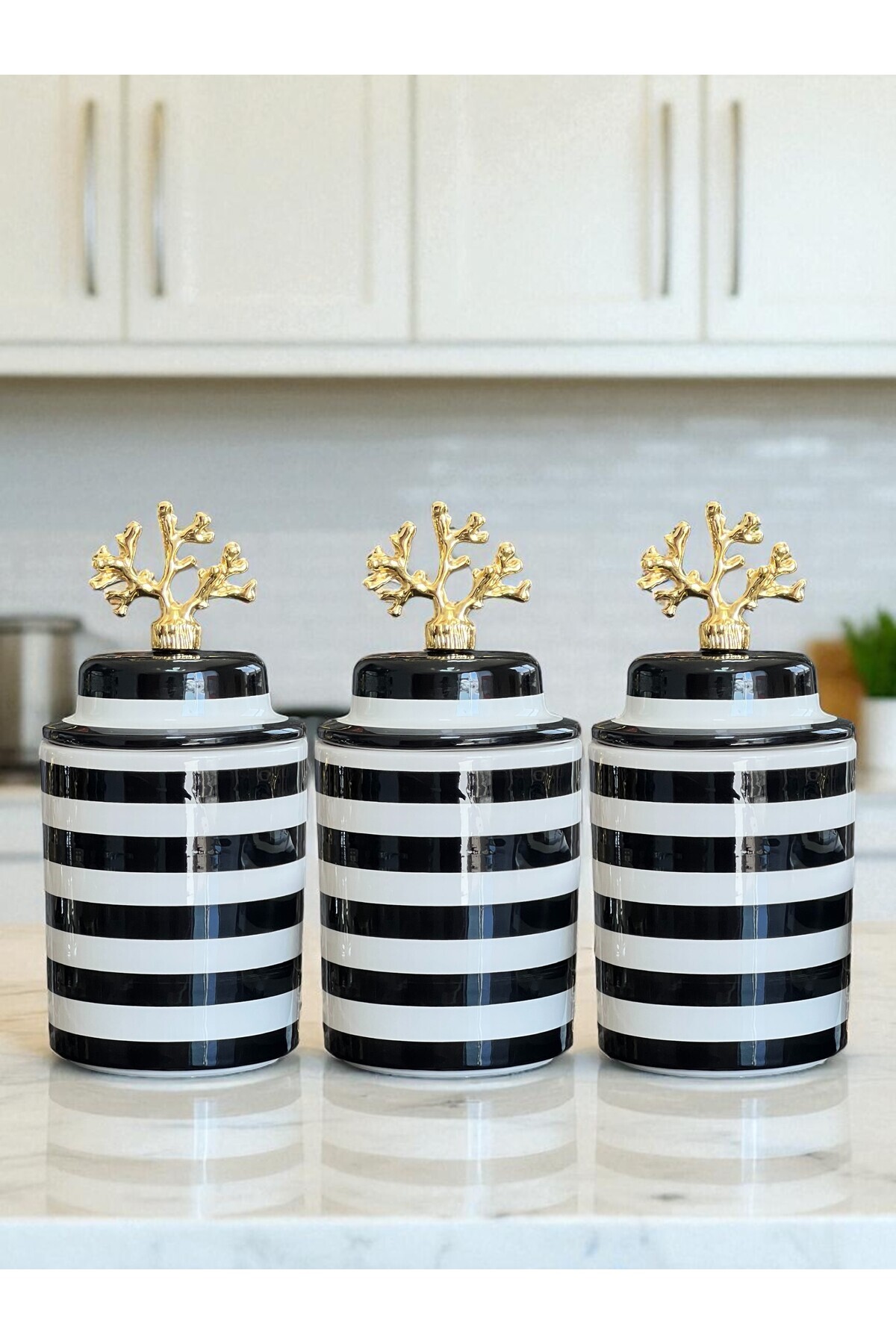 Mutfak Aksesuarı Seramik Kapaklı Siyah Zebra Silindir Siyah Zebra Kutu Gold Mutfak Aksesuarı Seramik Kapaklı Siyah Zebra Silindir Siyah Zebra Kutu Gold FRM193 تک سایز