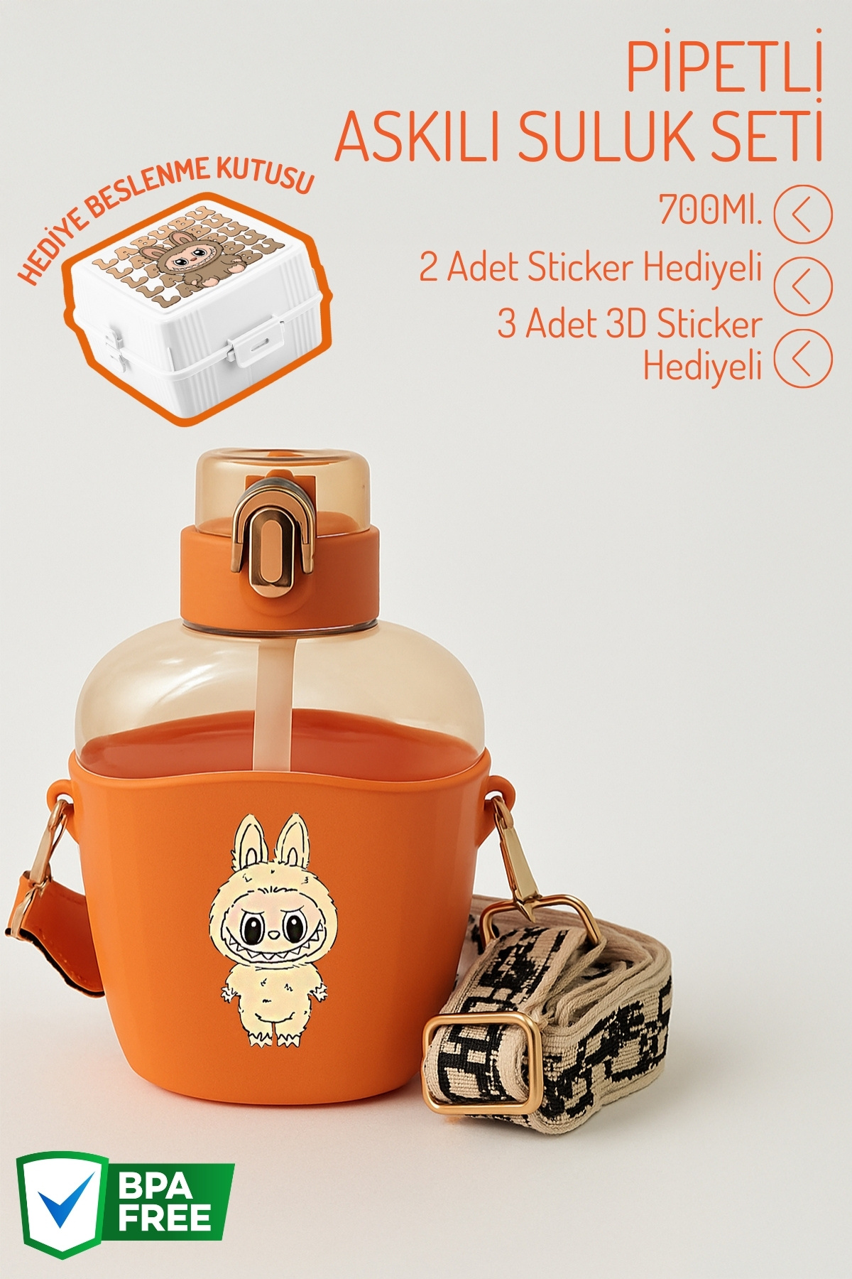 Beslenme Kutusu ve Labubu Etiket Hediyeli, Askılı ve Pipetli Matara Beslenme Kutusu ve Labubu Etiket Hediyeli, Askılı ve Pipetli Matara NDY-TB-0205 تک سایز