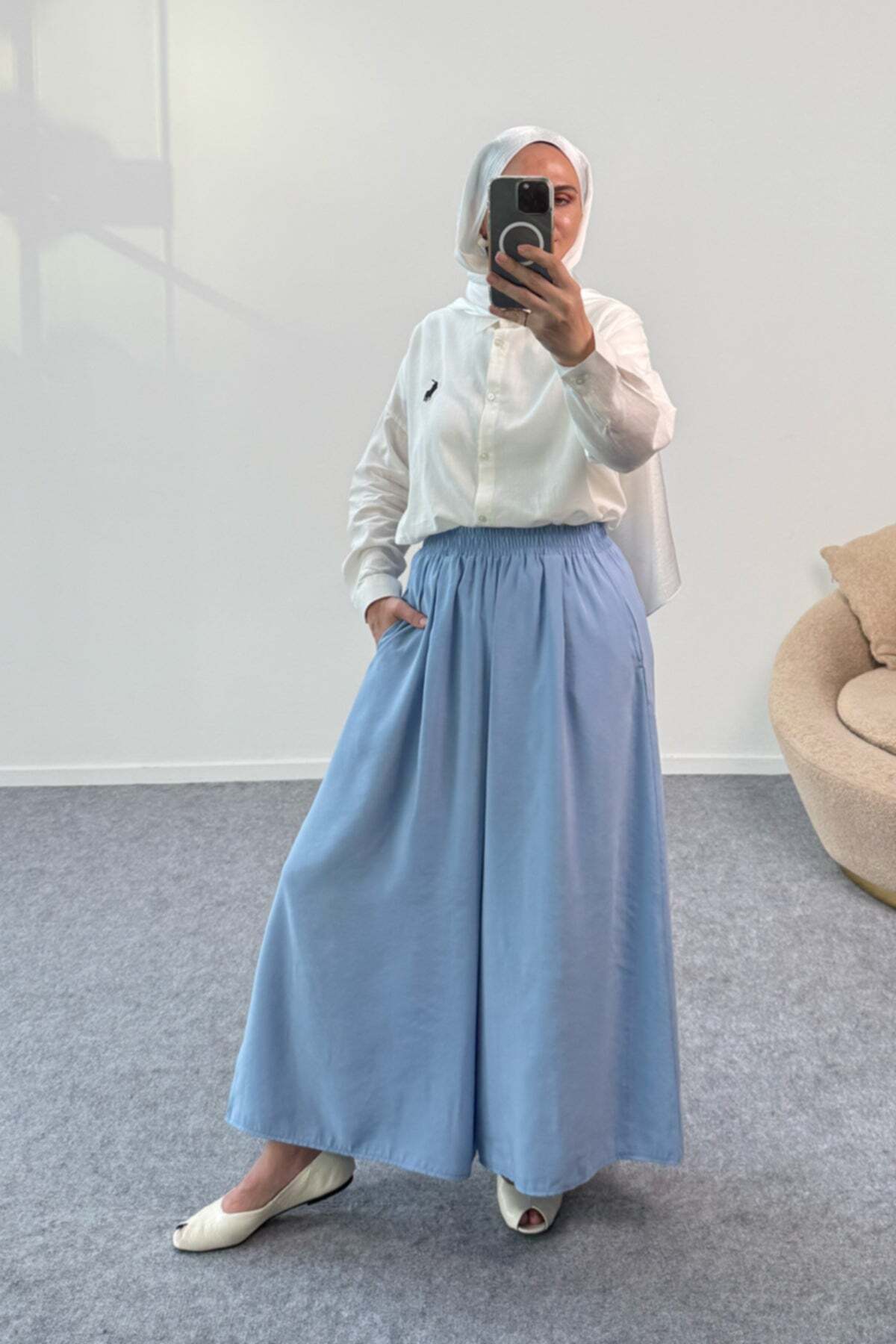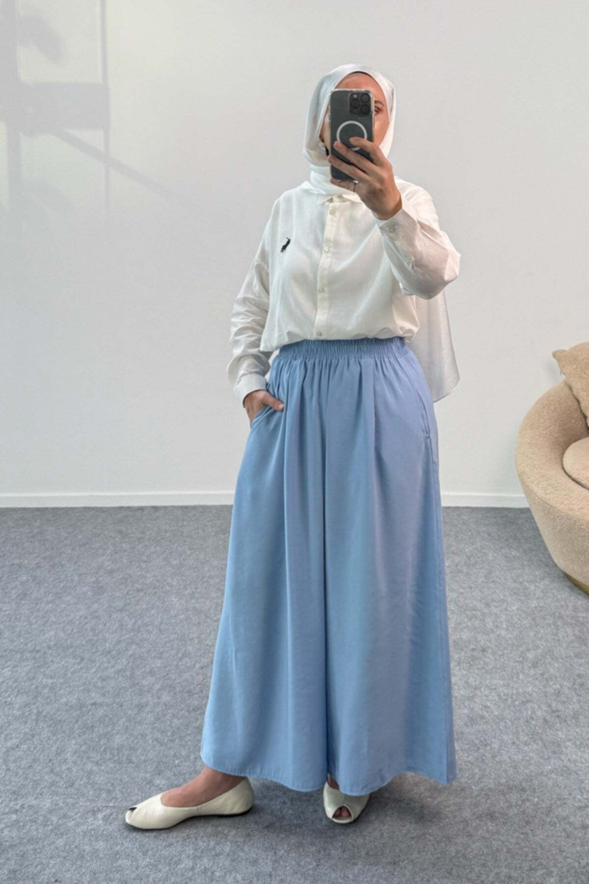 Beli Lastikli Geniş Paça Modal Etekli Pantolon 8809 - Bebek Mavi Beli Lastikli Geniş Paça Modal Etekli Pantolon 8809 - Bebek Mavi L/XL