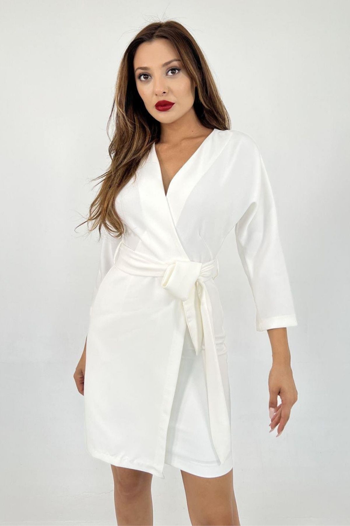 Fakir Kol Beyaz Saten Elbise Fakir Kol Beyaz Saten Elbise P216S1402 XL
