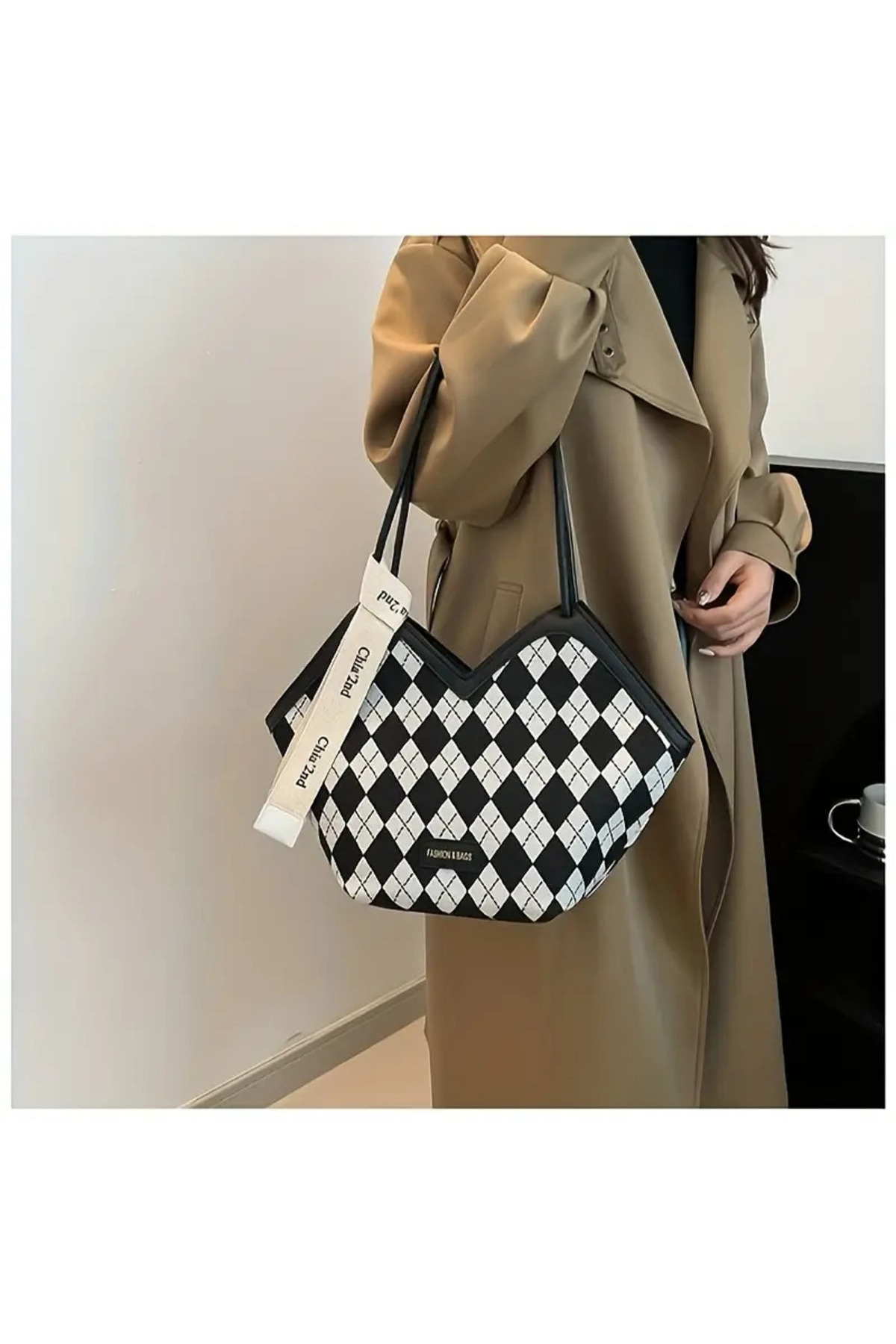 Avrupa Amerikan Moda, Trend Büyük Kapasiteli, Ekose Desenli Omuz Çantası Avrupa Amerikan Moda, Trend Büyük Kapasiteli, Ekose Desenli Omuz Çantası ESGÇ022 تک سایز