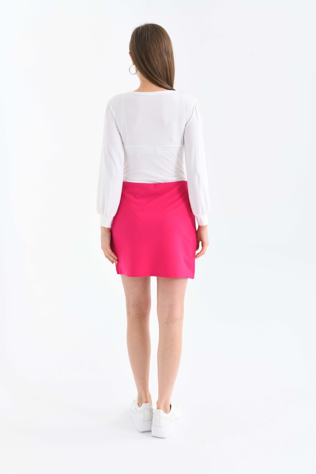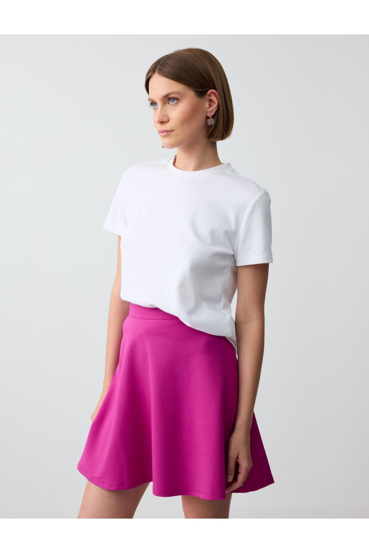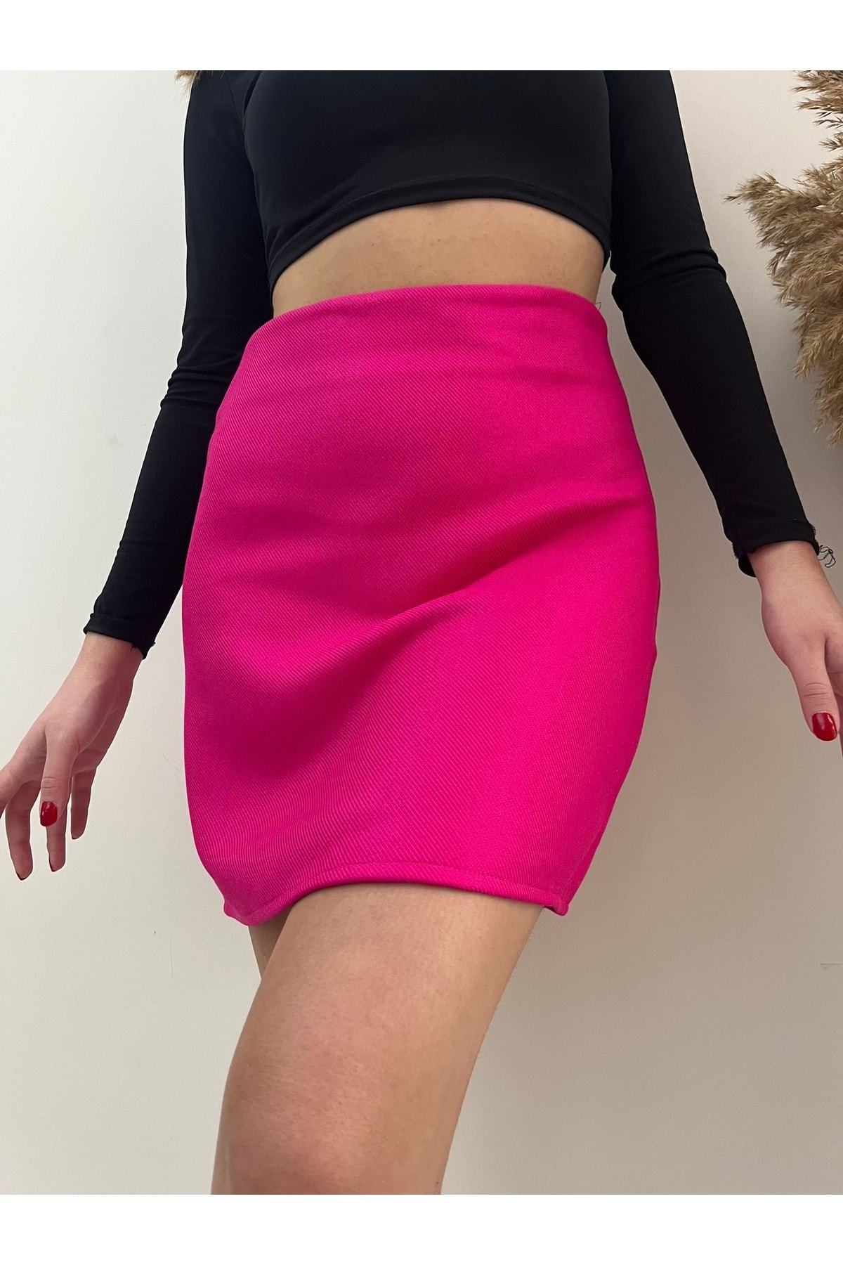 Kadın Pembe Beli Lastikli Yüksek Bel Mini Örme Etek Kadın Pembe Beli Lastikli Yüksek Bel Mini Örme Etek MM23ET0414 XL