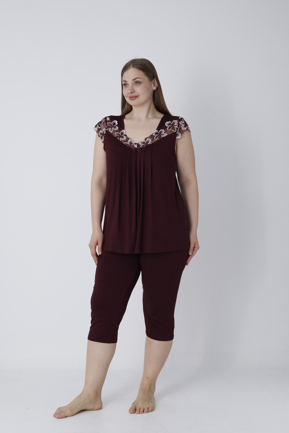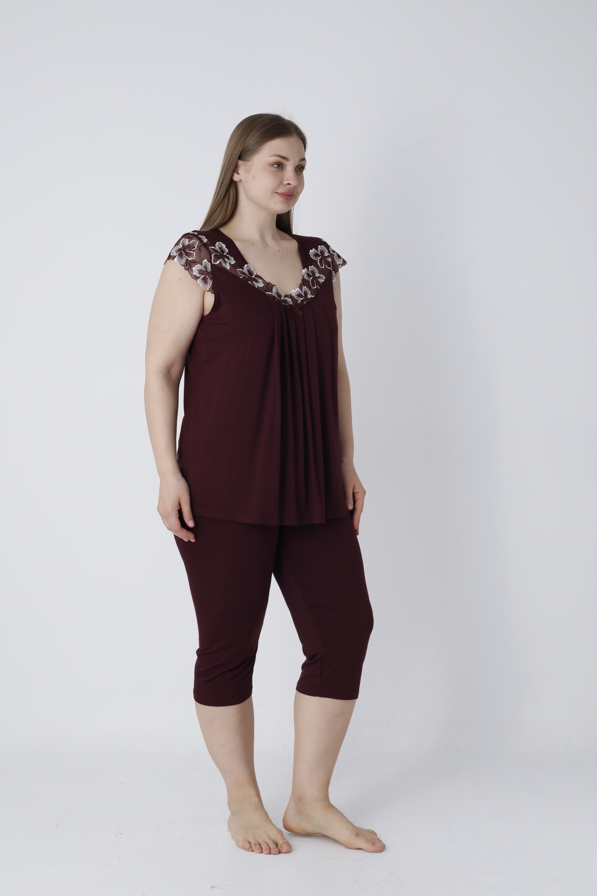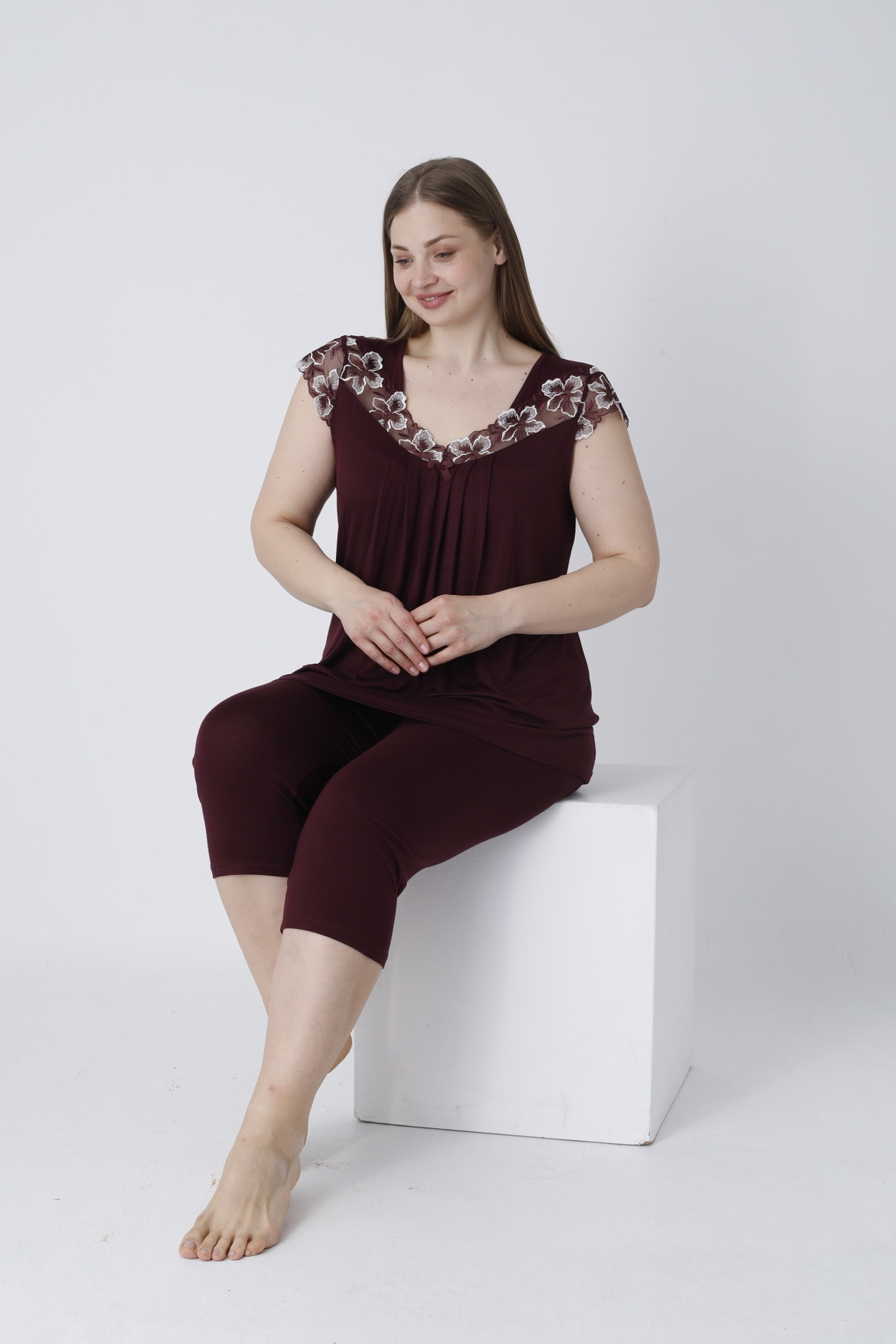 Kadın Büyük Beden Viskon Elastan Kumaş Kısa Kollu Kapri Takım 14544 Kadın Büyük Beden Viskon Elastan Kumaş Kısa Kollu Kapri Takım 14544 TYCDA0CD41FC054599C653A00 4XL