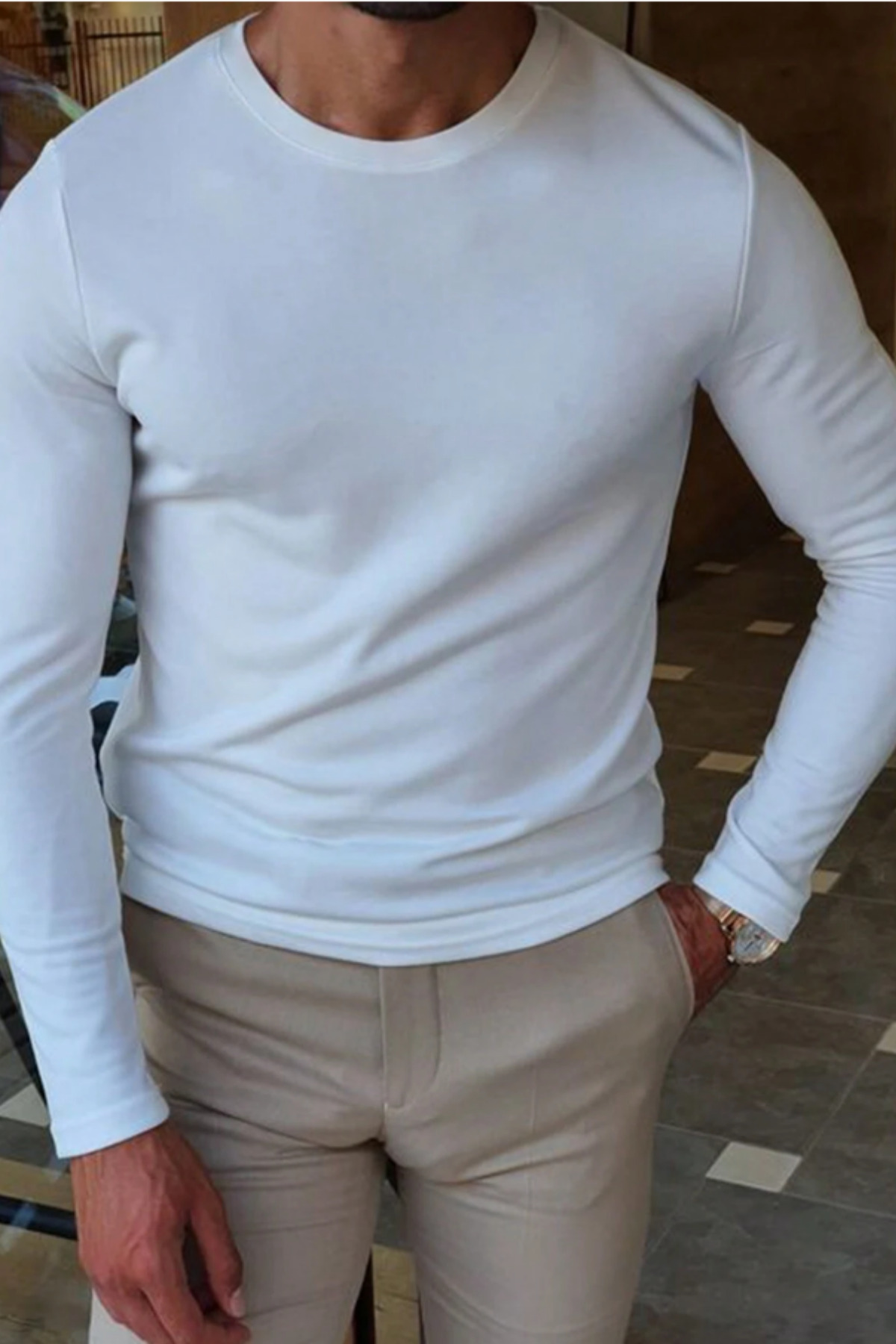 Erkek Beyaz Likralı Bisiklet Yaka Slim Uzun Kollu T-Shirt Erkek Beyaz Likralı Bisiklet Yaka Slim Uzun Kollu T-Shirt ELKTST025 XL