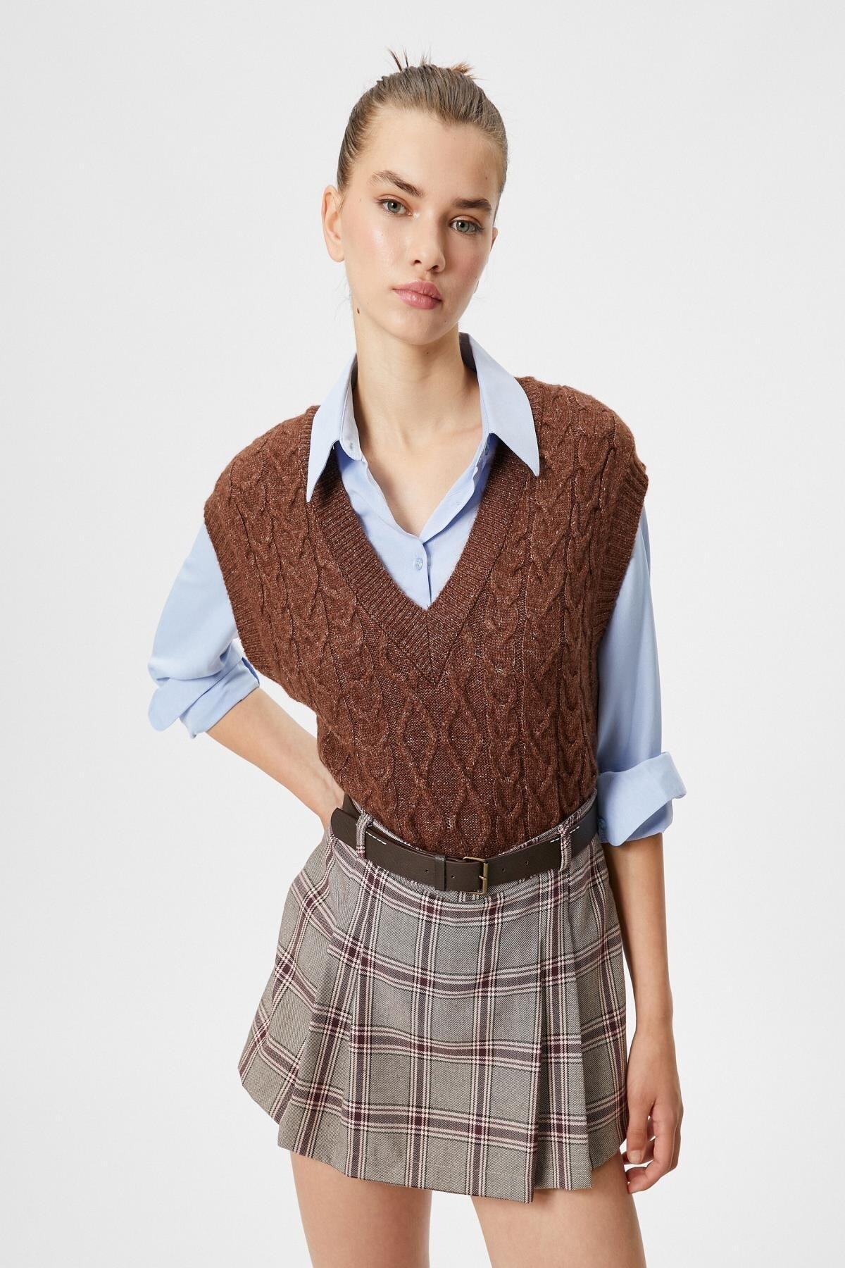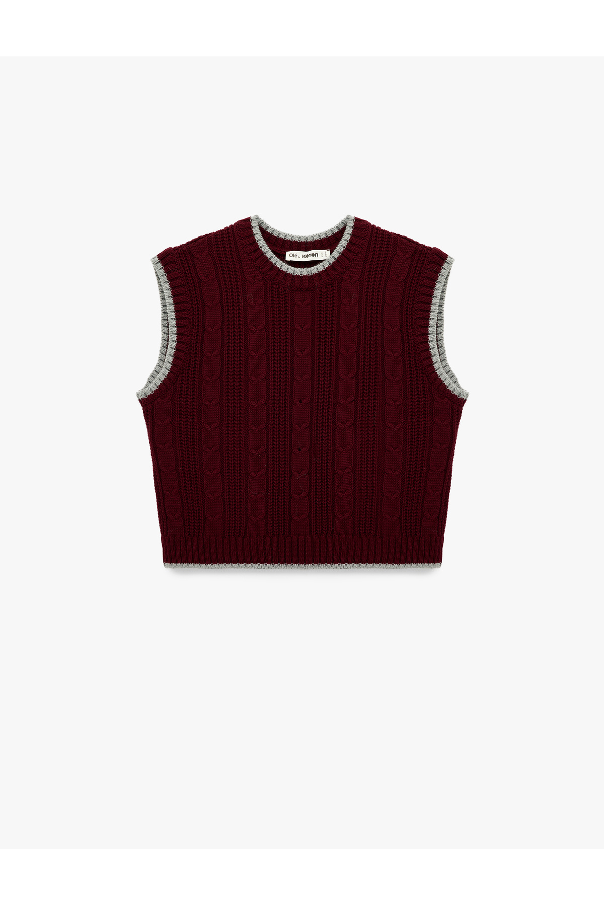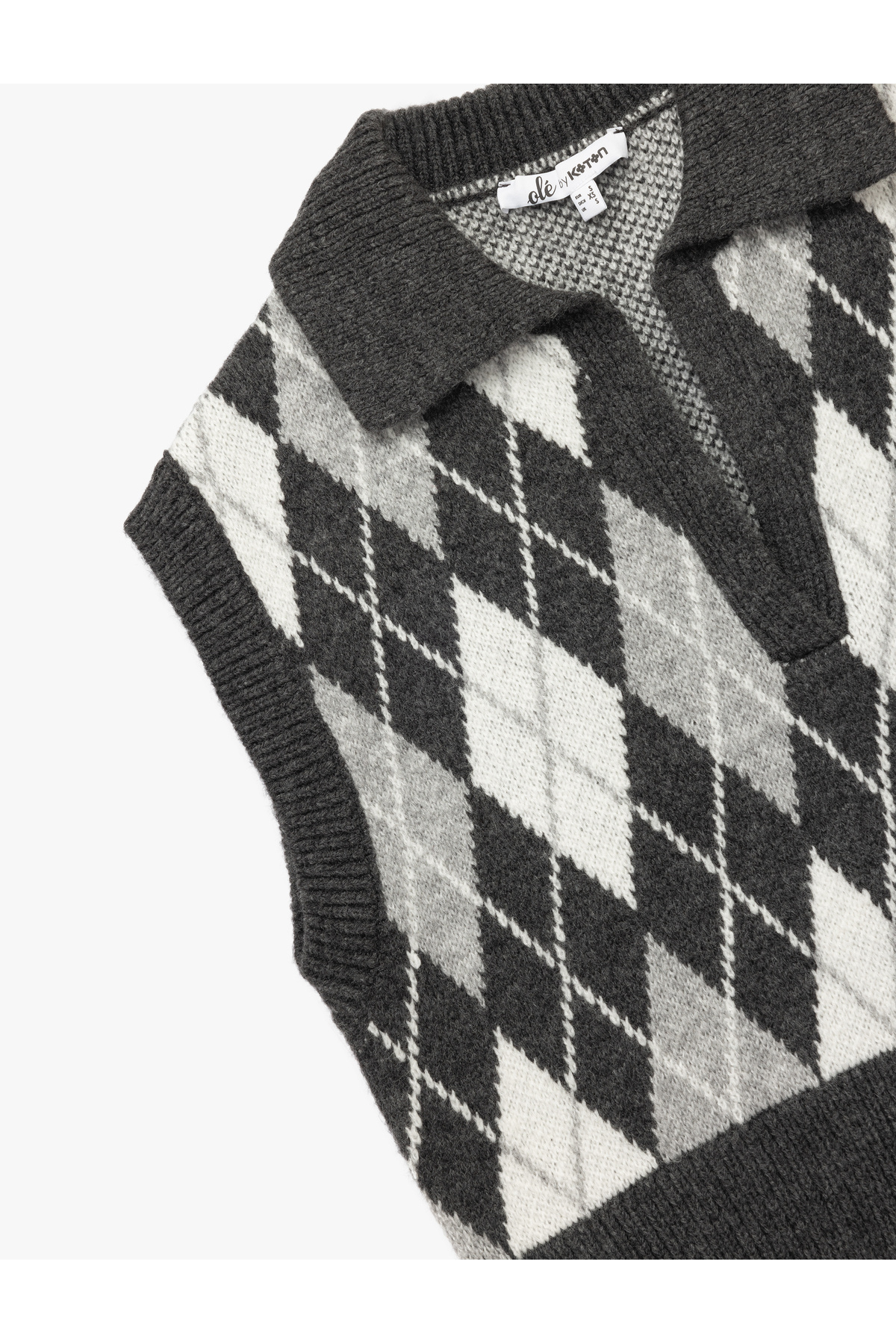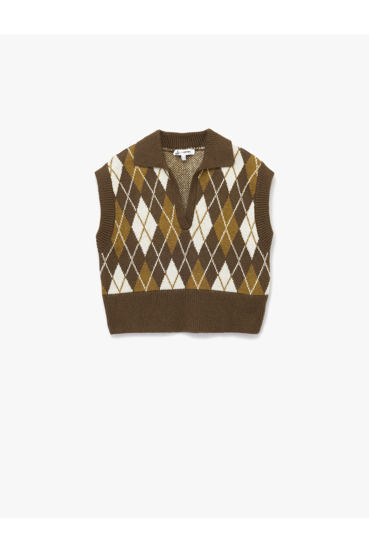 Kolsuz Baklava Desenli Jakarlı Polo Yaka Triko Süveter Kolsuz Baklava Desenli Jakarlı Polo Yaka Triko Süveter 6WAL20002IT L