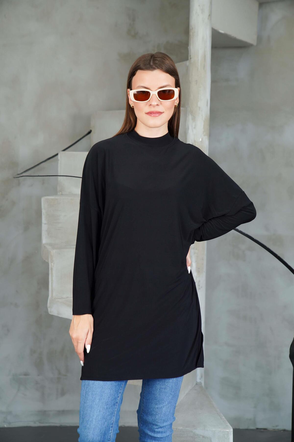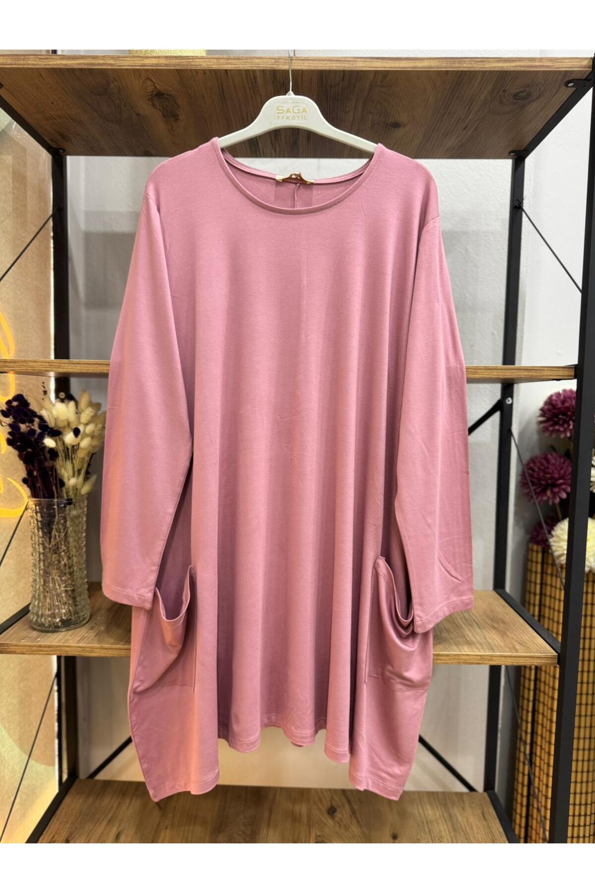 Kadın %100 pamuklu likralı cep detaylı A kesim penye tunik Kadın %100 pamuklu likralı cep detaylı A kesim penye tunik ozne9325 42/44