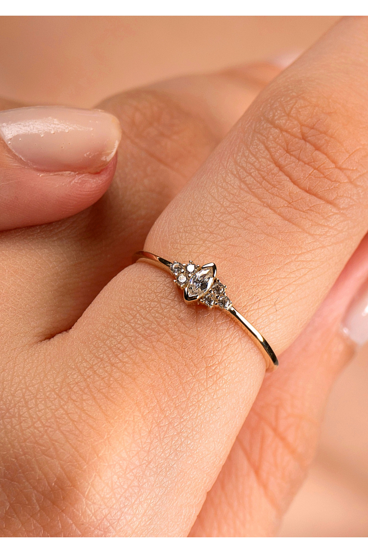 14 Ayar Altın Pırlanta Kesim Mekik Taşlı Yüzük 14 Ayar Altın Pırlanta Kesim Mekik Taşlı Yüzük Yzk69 20