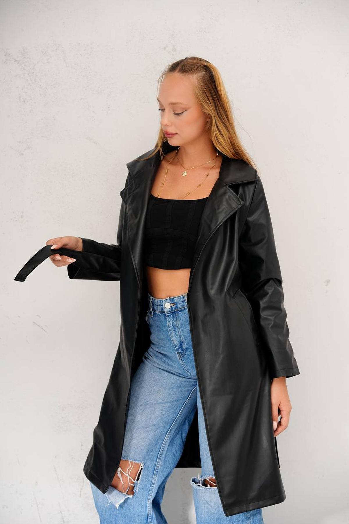 Oversize Bomber Kemerli Deri Ceket Oversize Bomber Kemerli Deri Ceket Yerdeks-Trençkot L