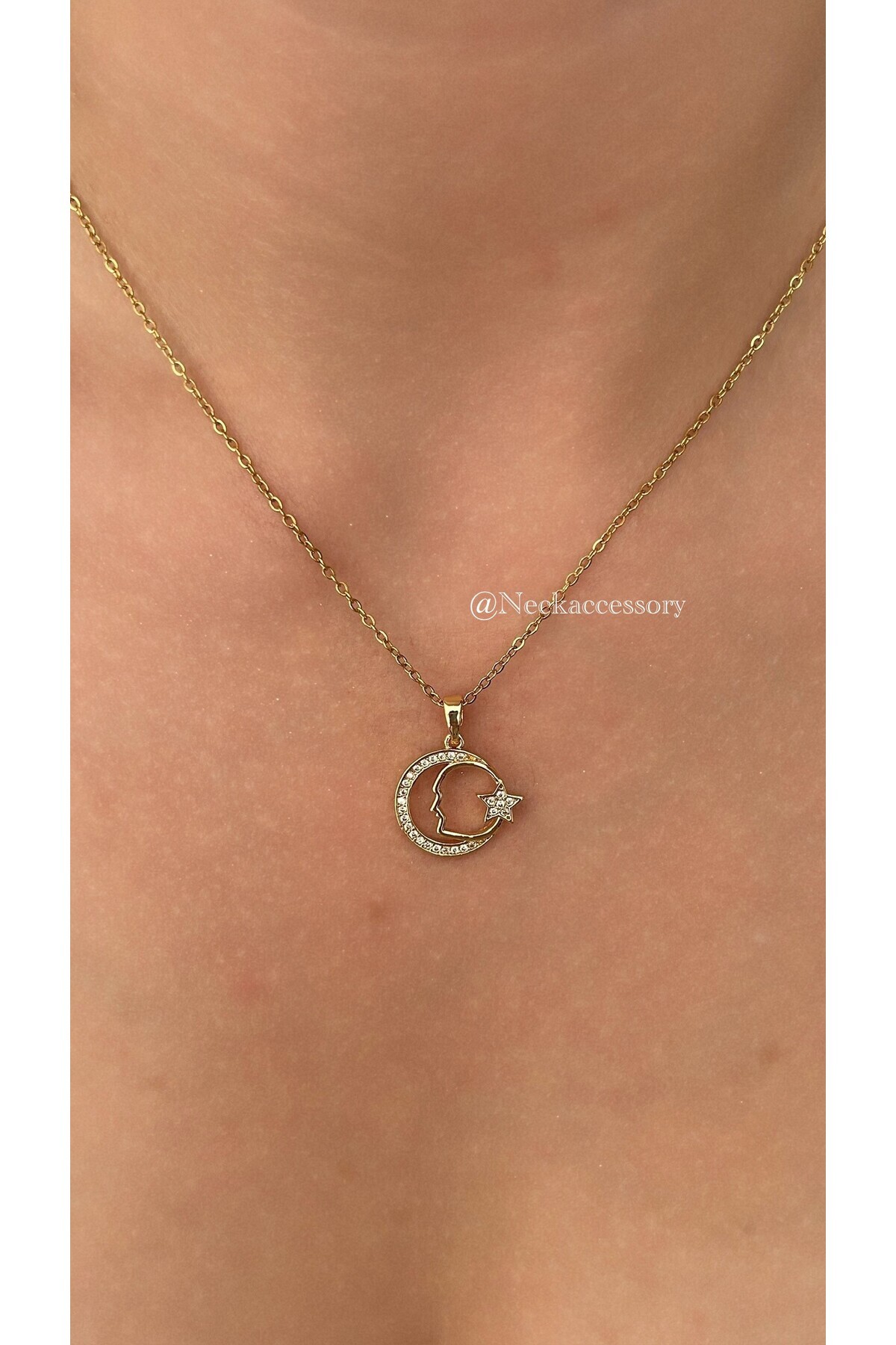 Çelik Ay Yıldız Kolye Çelik Ay Yıldız Kolye NECK00064 تک سایز