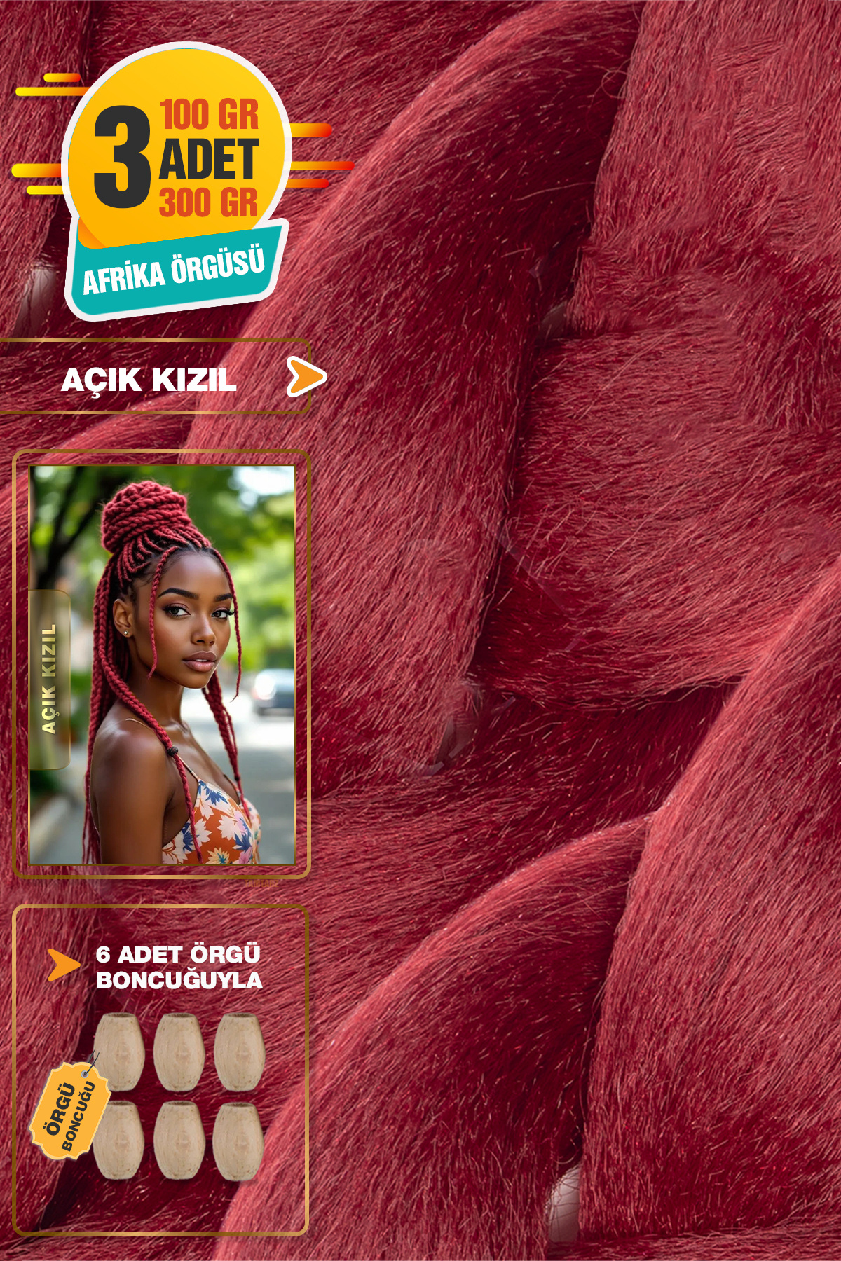 3 Adet Afrika Örgüsü İçin Fiber Sentetik Saç - Açık Kızıl + 6 Adet Örgü Boncuğu 3 Adet Afrika Örgüsü İçin Fiber Sentetik Saç - Açık Kızıl + 6 Adet Örgü Boncuğu AFOR-3ADET تک سایز