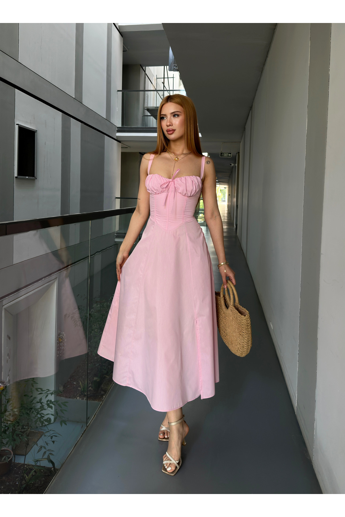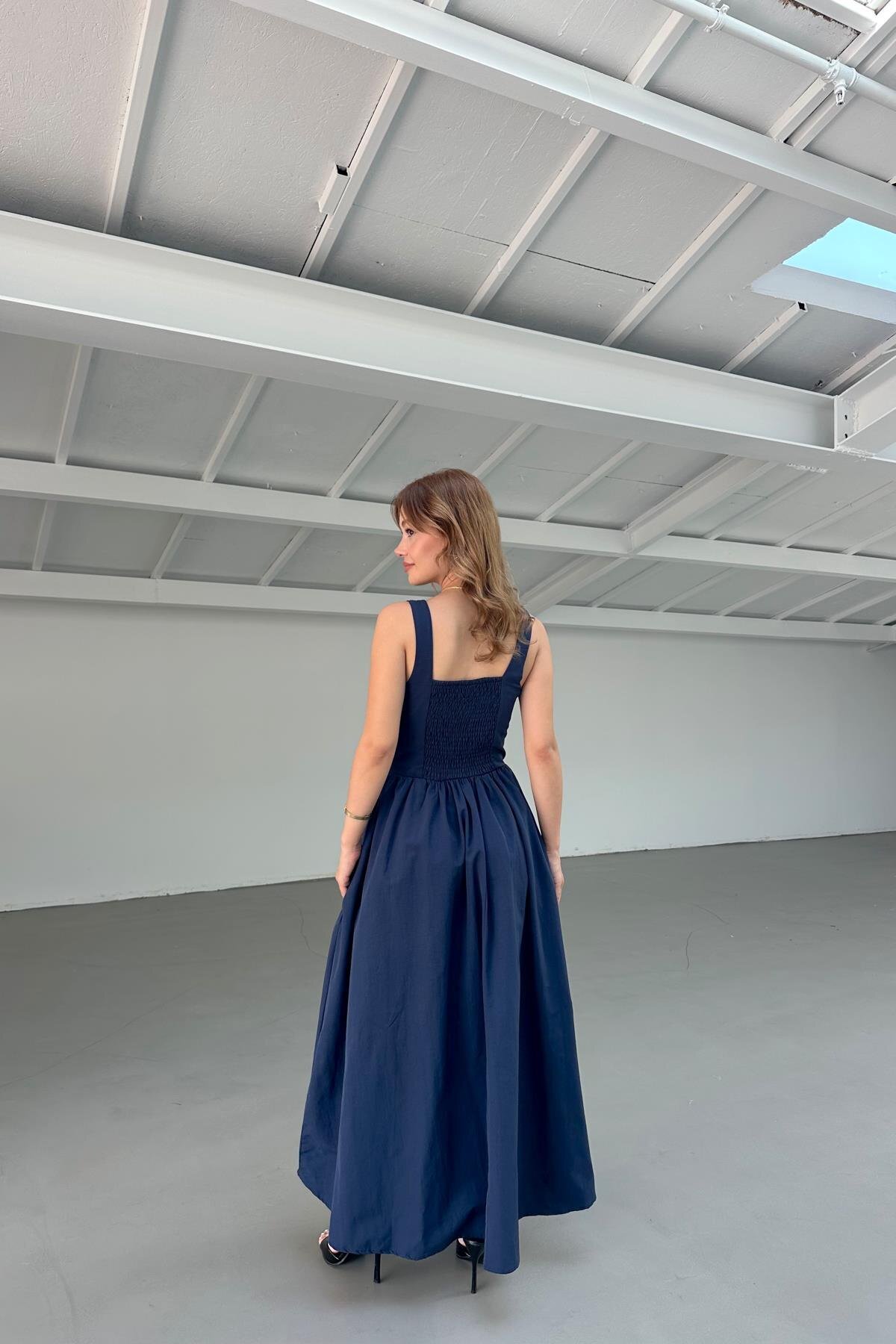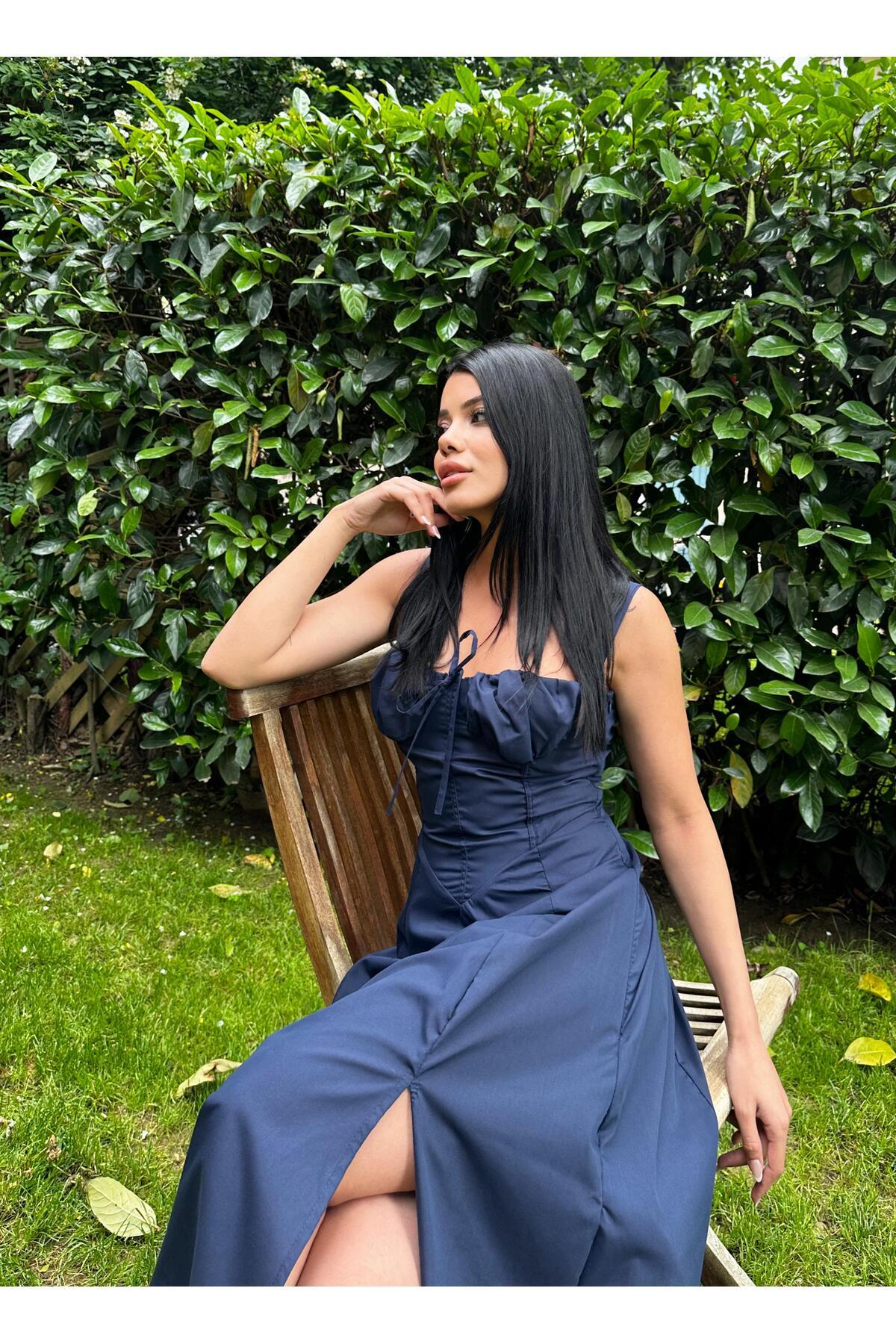 Büzgü Göğüs Detaylı Midi Elbise Lacivert Büzgü Göğüs Detaylı Midi Elbise Lacivert TX9AD2483638625 L