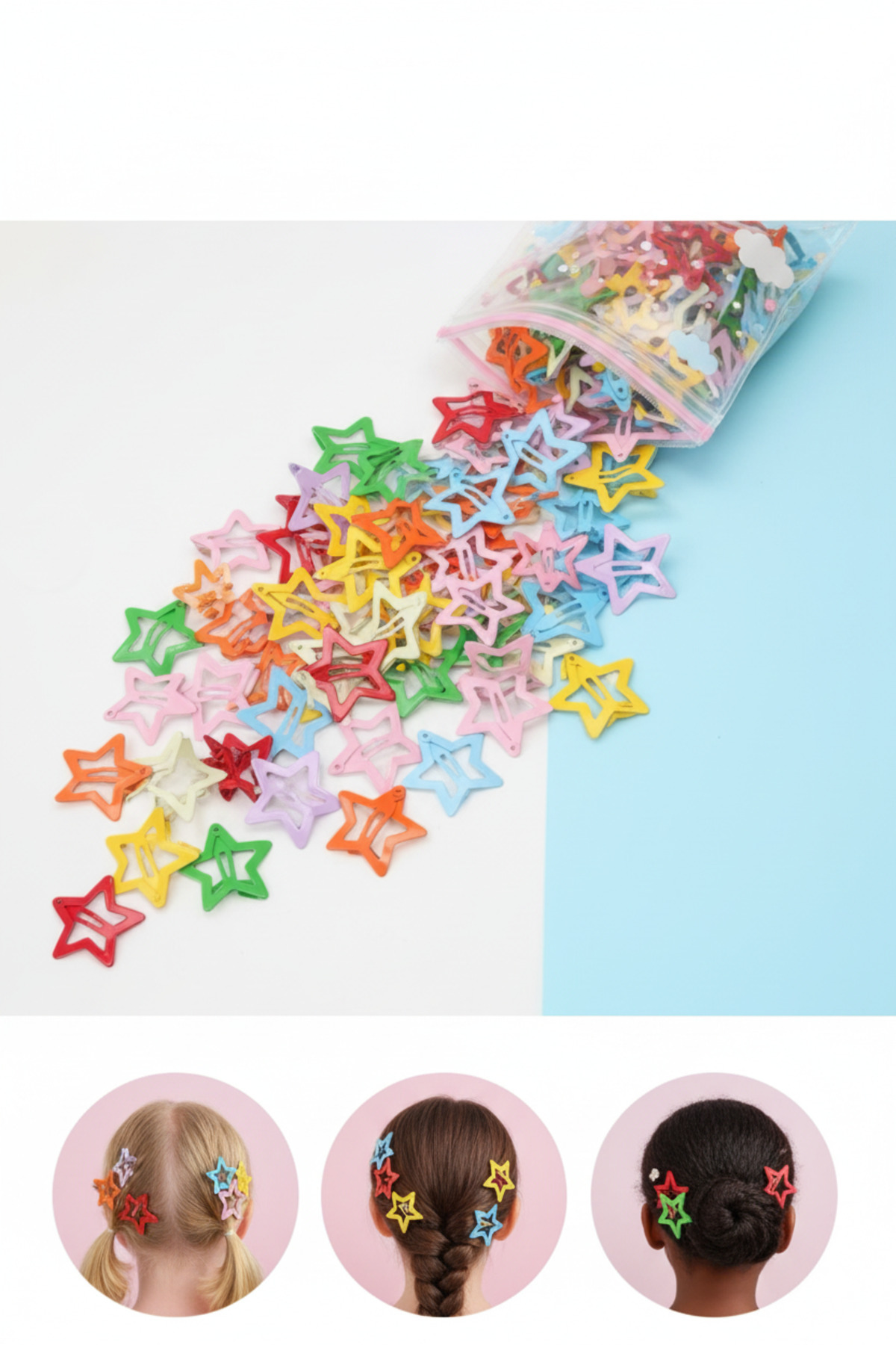 10'lu Rengarenk Kayan Yıldız Figürlü Çıt-Çıt Kız Çocuk Toka Seti 10'lu Rengarenk Kayan Yıldız Figürlü Çıt-Çıt Kız Çocuk Toka Seti NSNKAYANYILDIZ تک سایز
