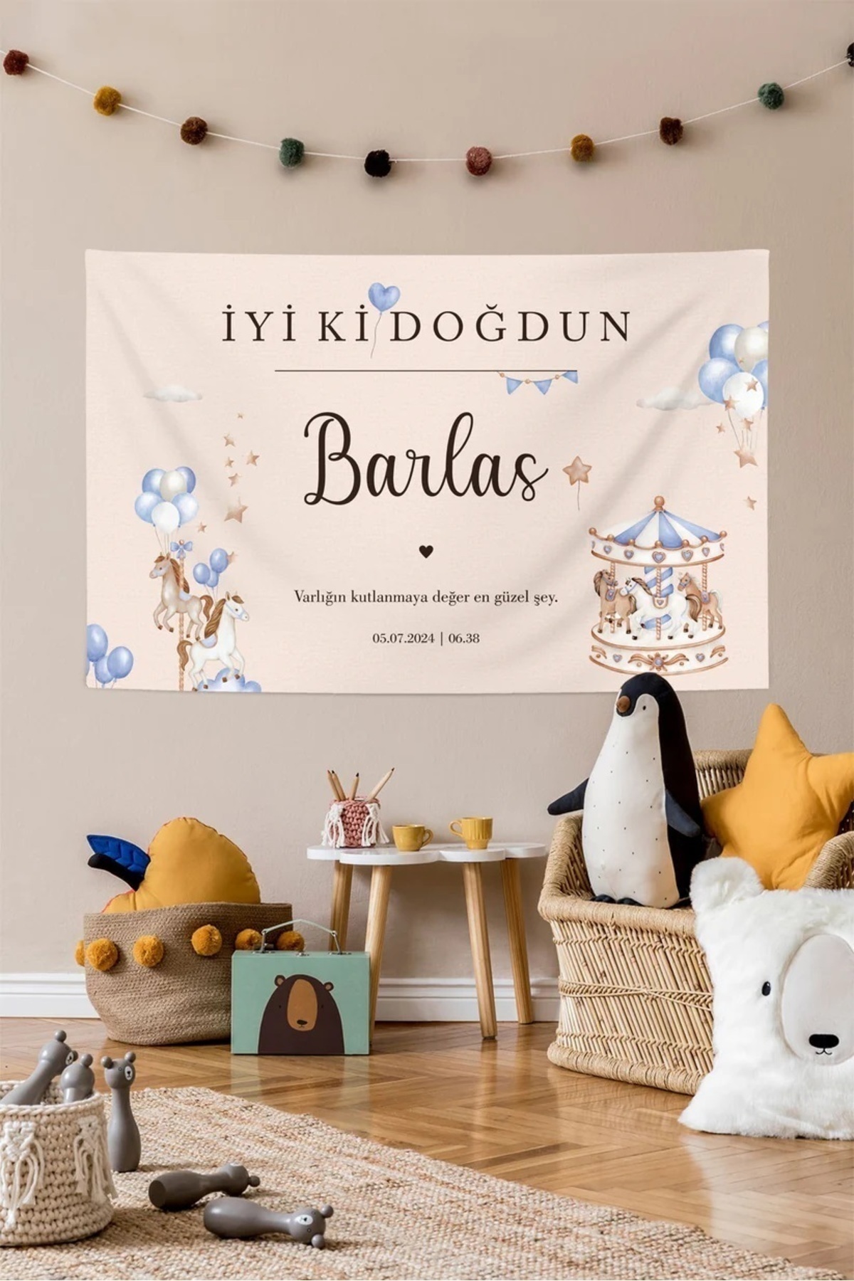 Kişiye Özel Kumaş Atlı Karınca Temalı Doğum Günü Happy Birthday İyi Ki Doğdun Duvar Örtüsü Panosu Kişiye Özel Kumaş Atlı Karınca Temalı Doğum Günü Happy Birthday İyi Ki Doğdun Duvar Örtüsü Panosu DOG115 270 x 150