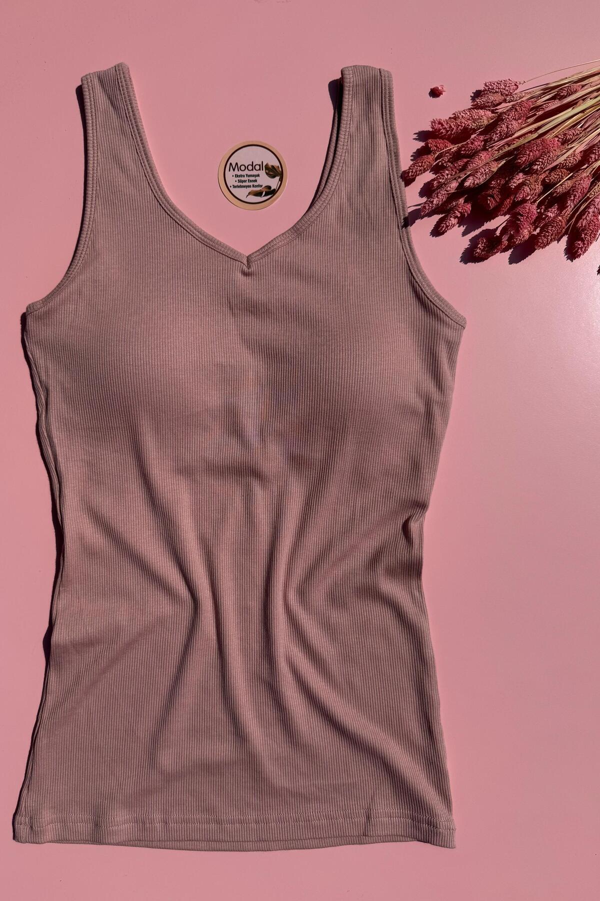 Modal Kumaş | V Yaka Pudra Renk Pedli Ribana Kadın T-shirt-Atlet 66E53 Modal Kumaş | V Yaka Pudra Renk Pedli Ribana Kadın T-shirt-Atlet 66E53 66Elosia53 2XL