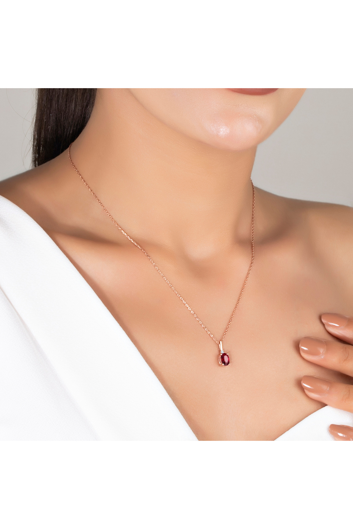 925 Ayar Gümüş Oval Kesim Yakut ve Pırlanta Taşlı Rose, Sarı Altın ve Gümüş Kaplama Hediye Kolye 925 Ayar Gümüş Oval Kesim Yakut ve Pırlanta Taşlı Rose, Sarı Altın ve Gümüş Kaplama Hediye Kolye OVL-TEL-YKT 50