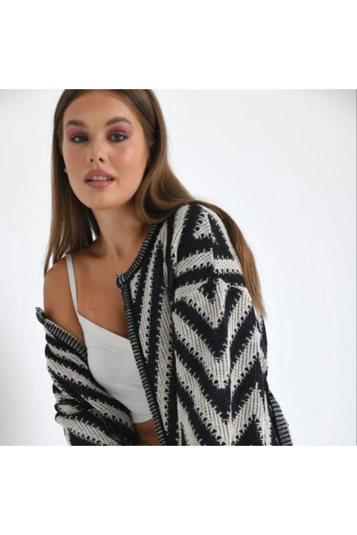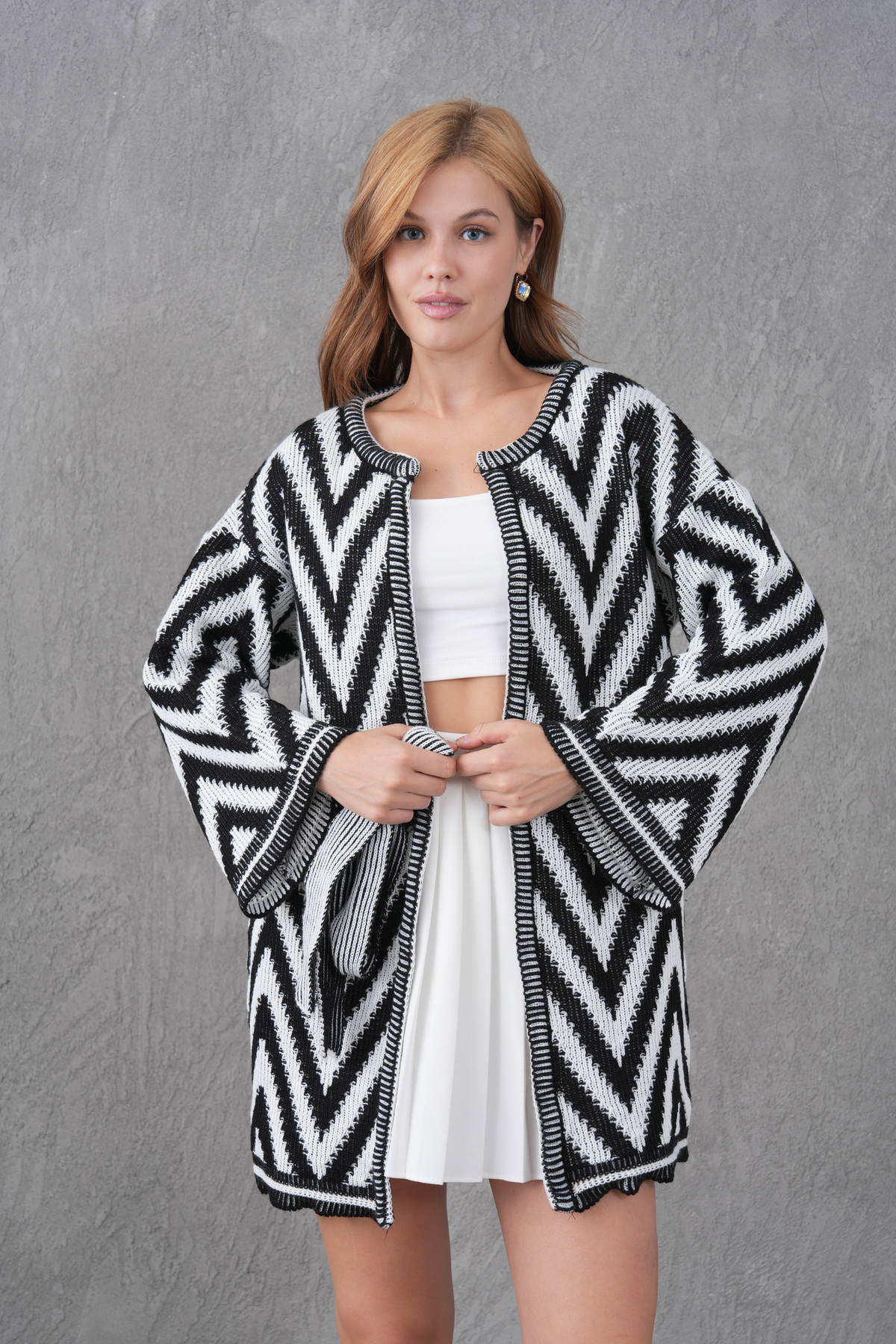 Siyah Beyaz Zigzag Desenli Kuşak Detaylı Triko Hırka 3201 Siyah Beyaz Zigzag Desenli Kuşak Detaylı Triko Hırka 3201 4S1B-LNT-3201 Standart