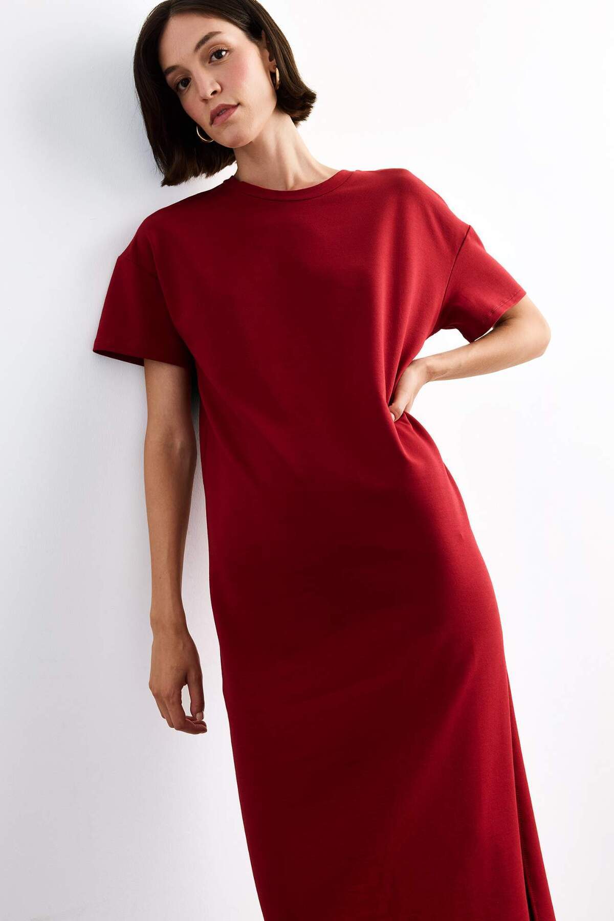 Bisiklet Yaka Basic Düz Kısa Kollu Midi Elbise G1059AX25SM Bisiklet Yaka Basic Düz Kısa Kollu Midi Elbise G1059AX25SM XL