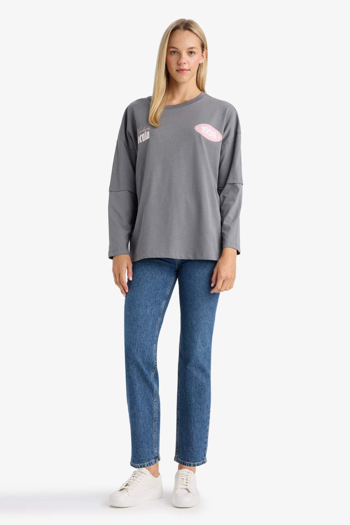 Loose Fit Bisiklet Yaka Sırt Baskılı Uzun Kollu Tişört F8914AX25AU Loose Fit Bisiklet Yaka Sırt Baskılı Uzun Kollu Tişört F8914AX25AU XL