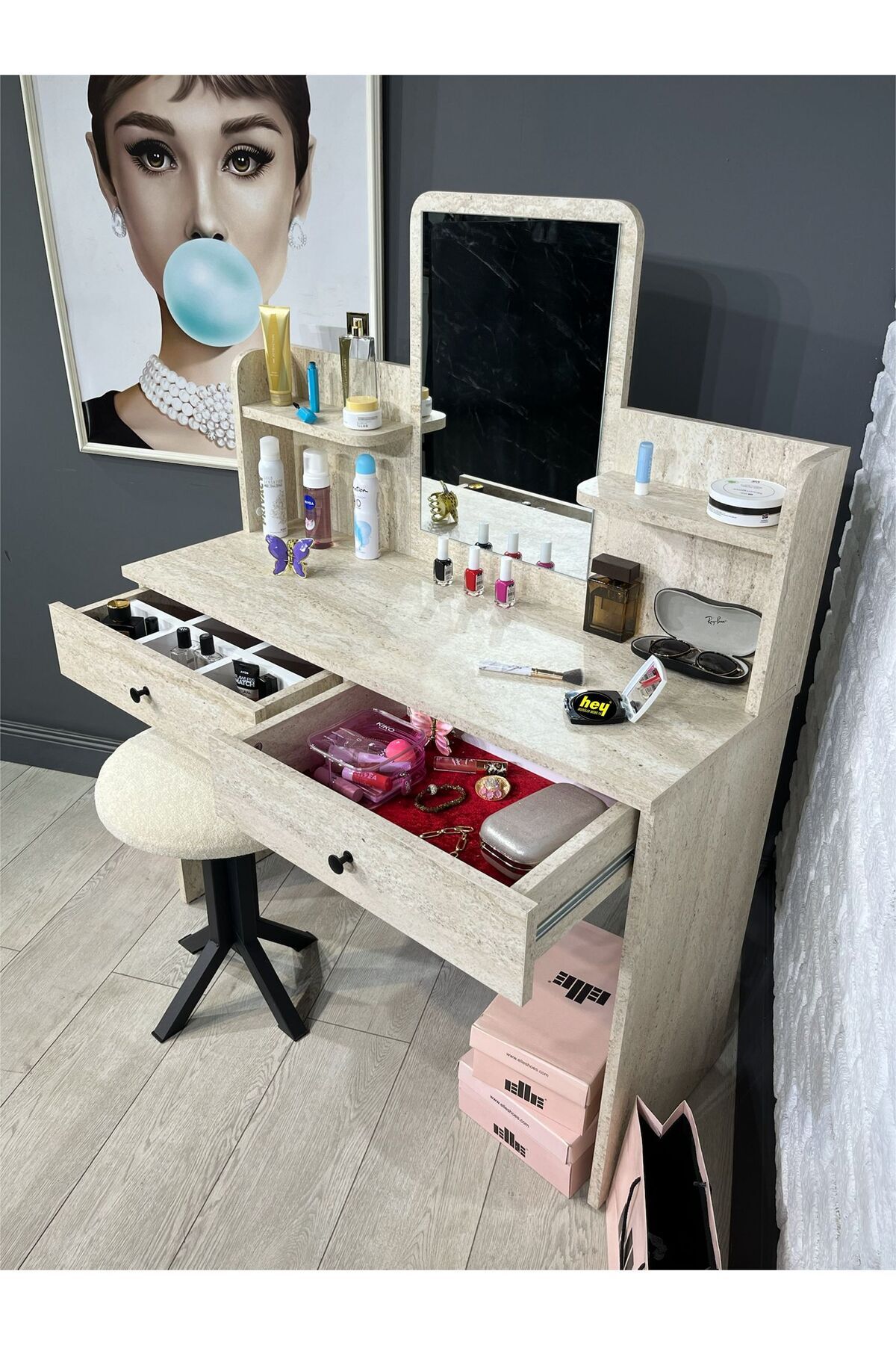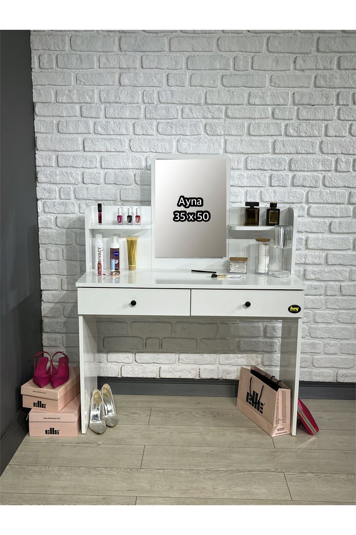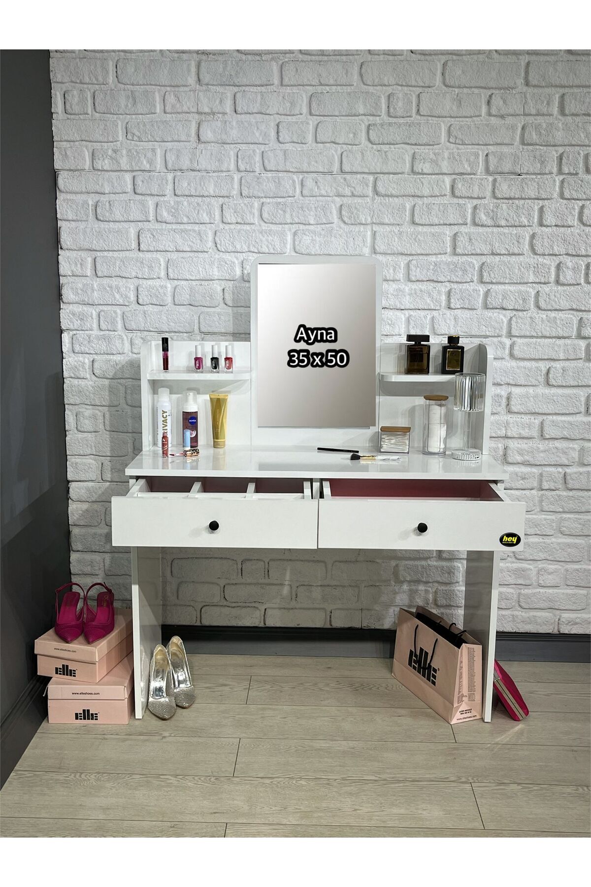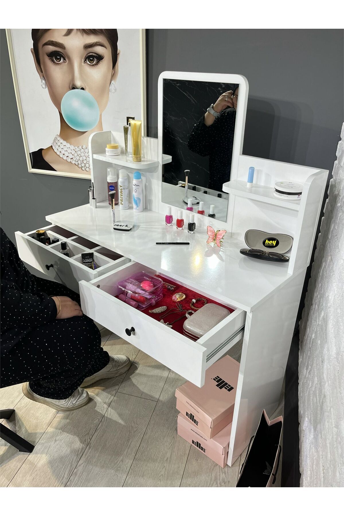 Makyaj Masası Aynalı Tuvalet Masası 2 Çekmeceli Takı Düzenleyici ve Raflı Organizer Beyaz 104 cm Makyaj Masası Aynalı Tuvalet Masası 2 Çekmeceli Takı Düzenleyici ve Raflı Organizer Beyaz 104 cm HY-1508 تک سایز