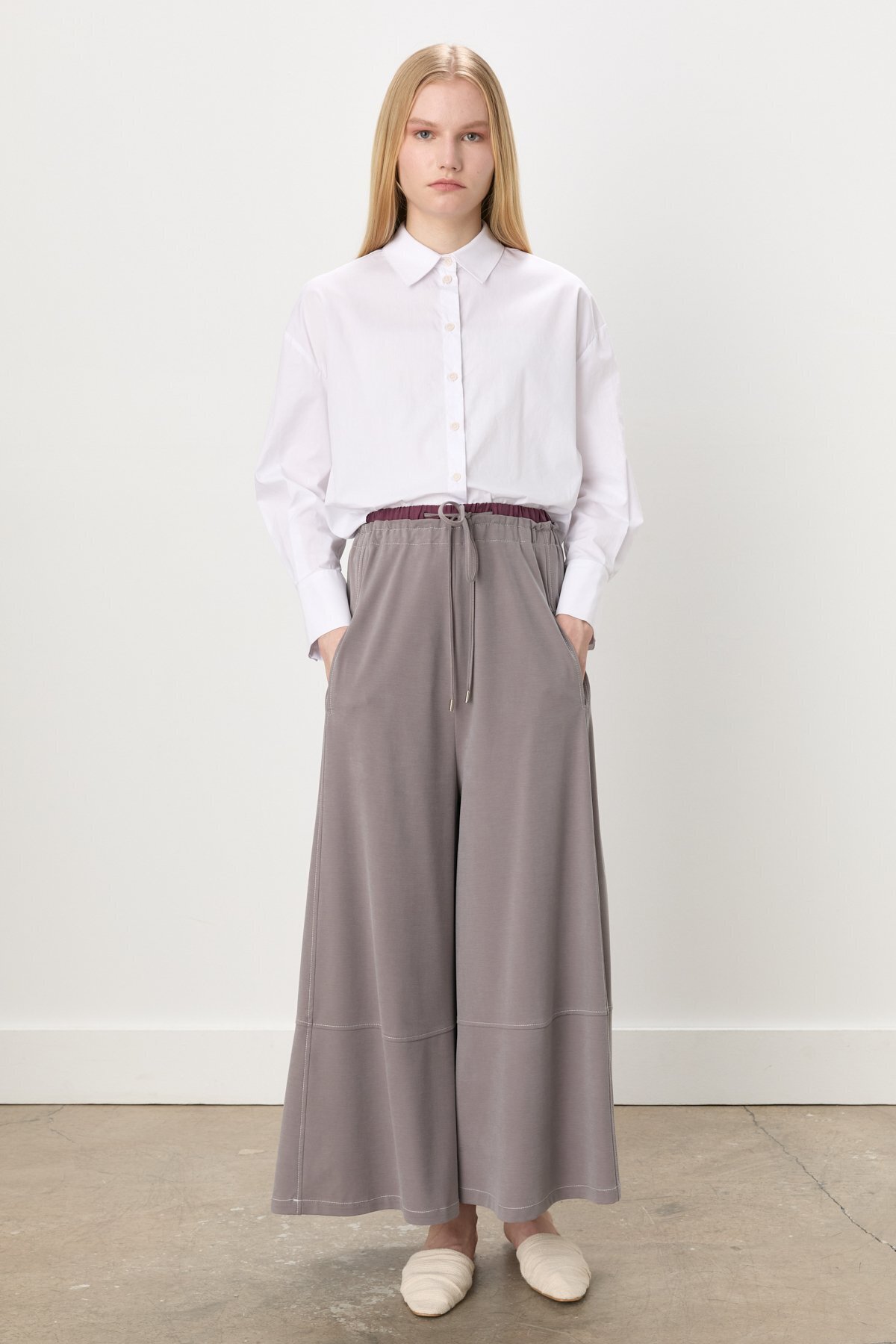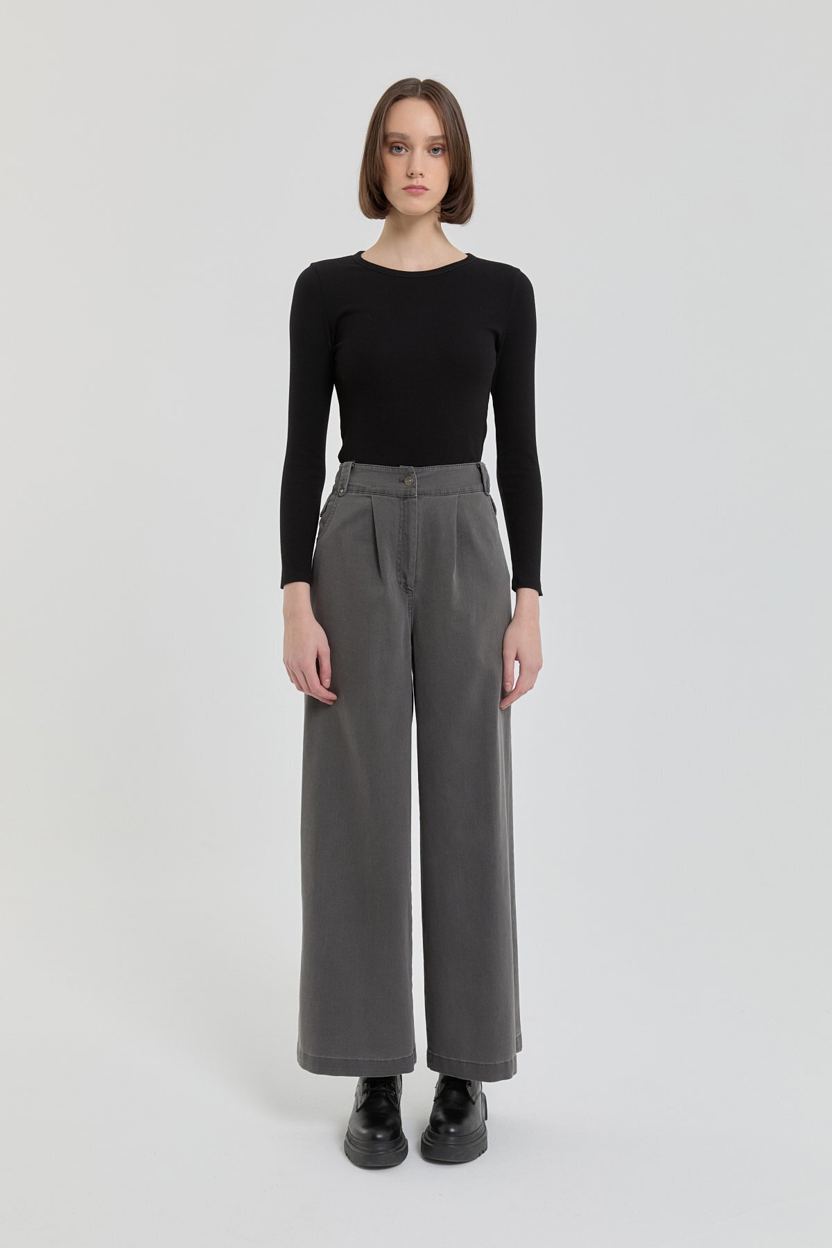 Dikiş Detaylı Bol Paça Örme Pantolon Haki Dikiş Detaylı Bol Paça Örme Pantolon Haki 251PA6162NH.1 42