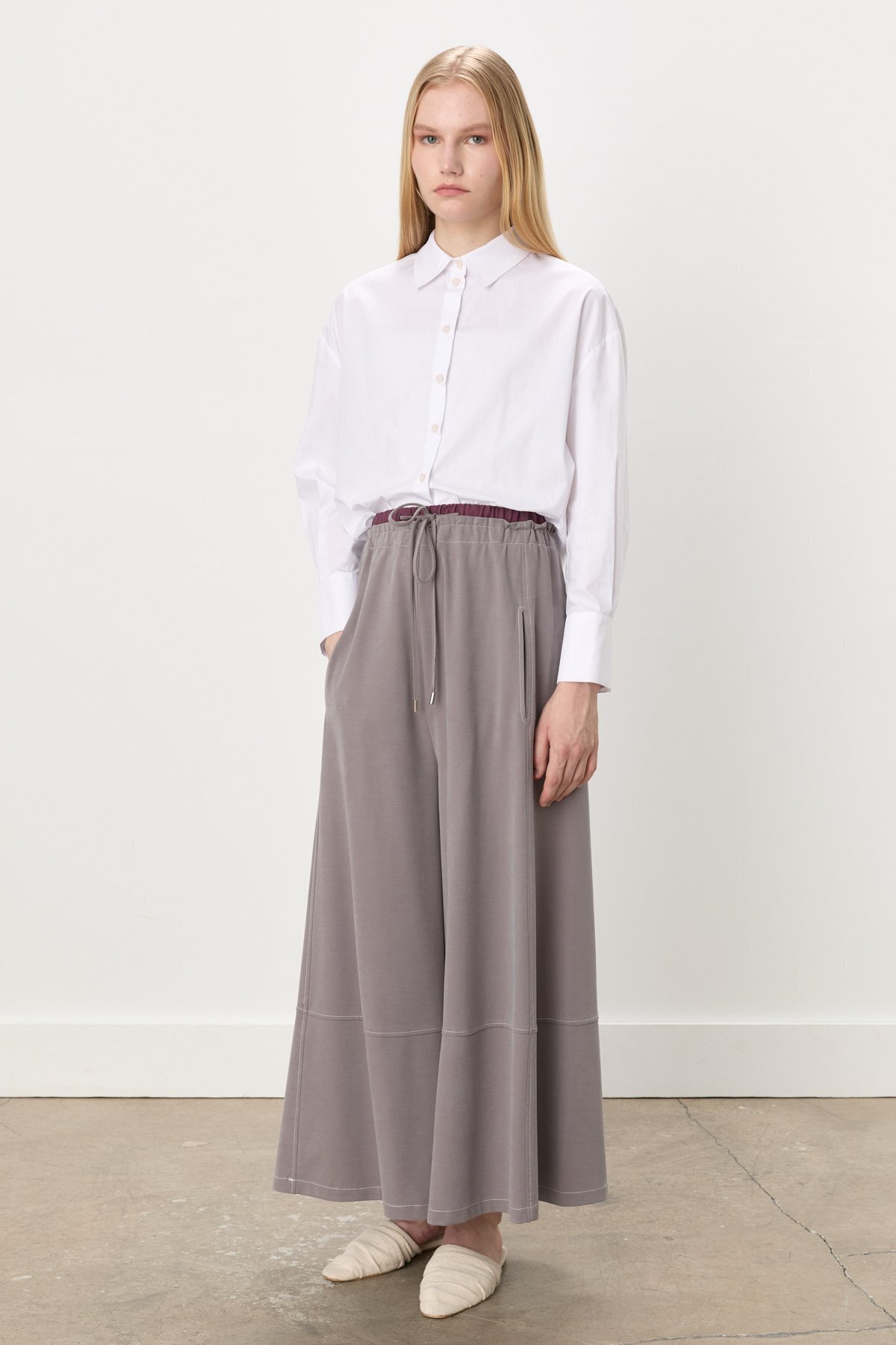 Dikiş Detaylı Bol Paça Örme Pantolon Gri Dikiş Detaylı Bol Paça Örme Pantolon Gri 251PA6162NH.1 42