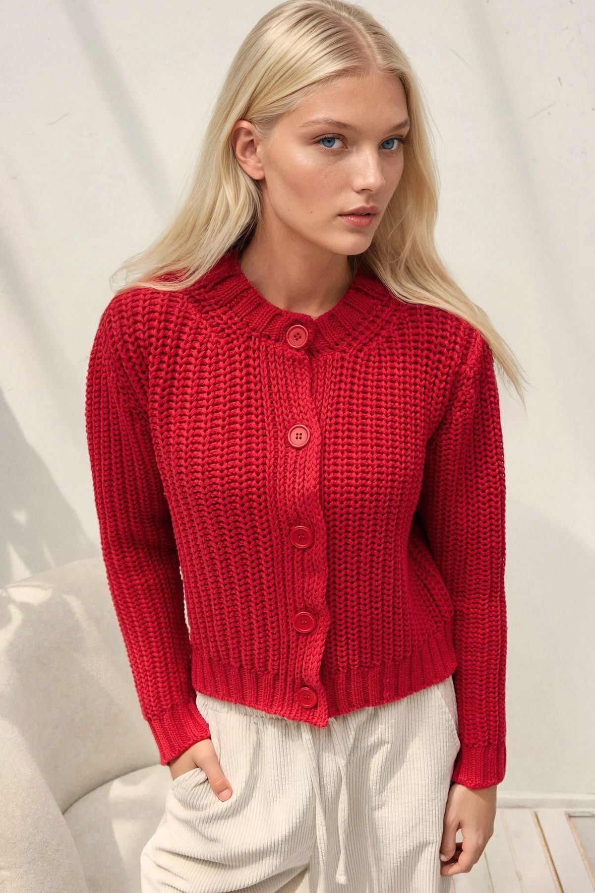 Dokulu Örme Yuvarlak Yaka Hırka Dokulu Örme Yuvarlak Yaka Hırka MAGM5N08
