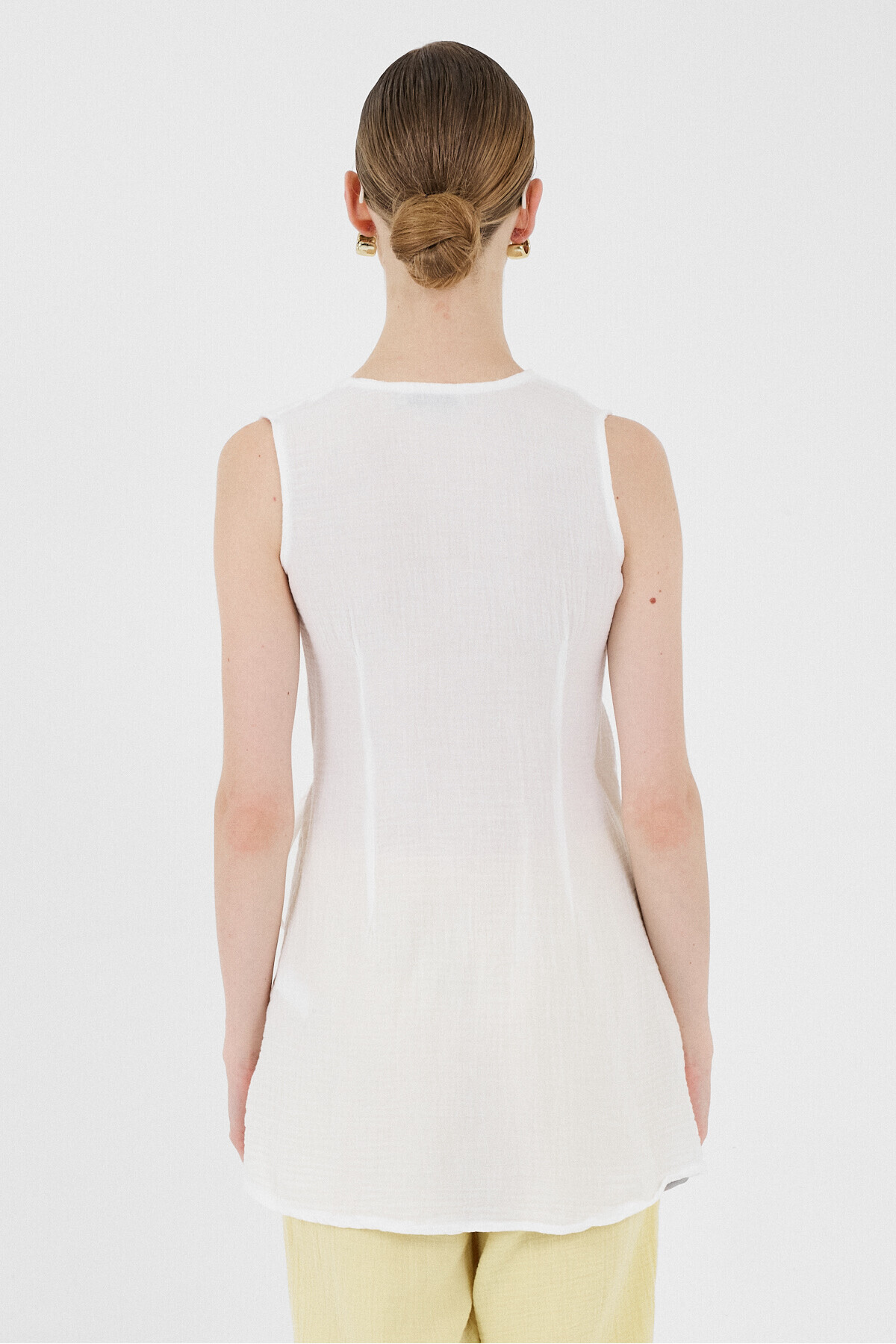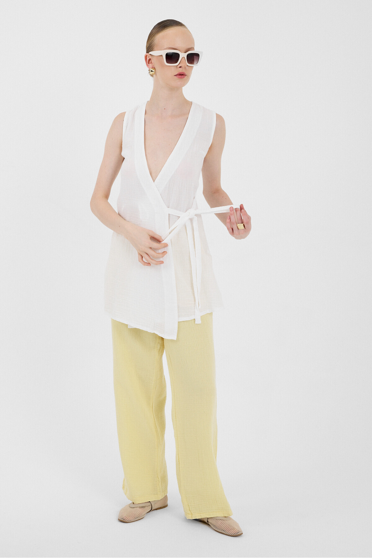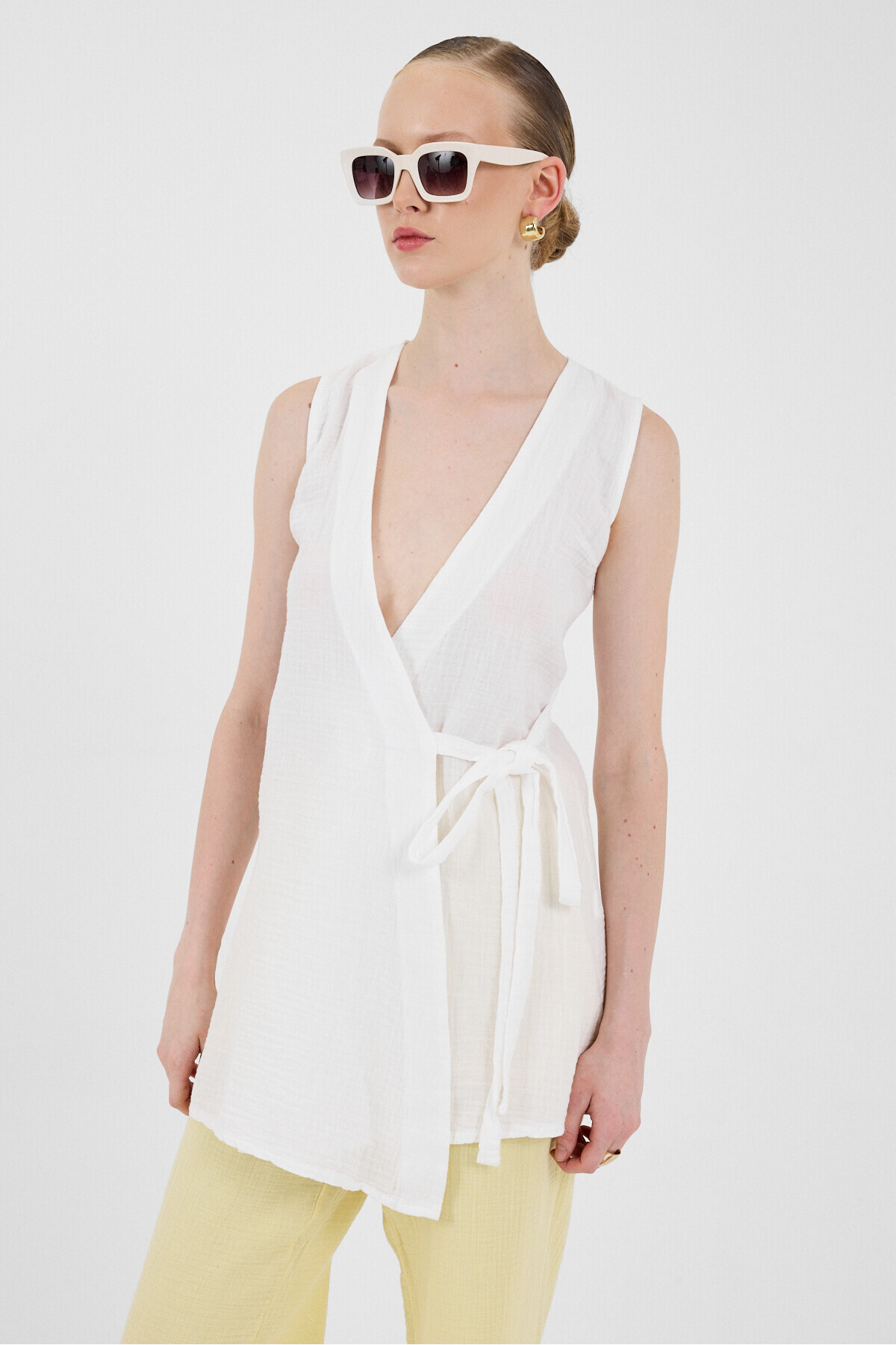 Beyaz %100 Pamuk Müslin Yandan Bağlamalı Kuşaklı Yelek 8017A Beyaz %100 Pamuk Müslin Yandan Bağlamalı Kuşaklı Yelek 8017A 25Y1123DIS063 42