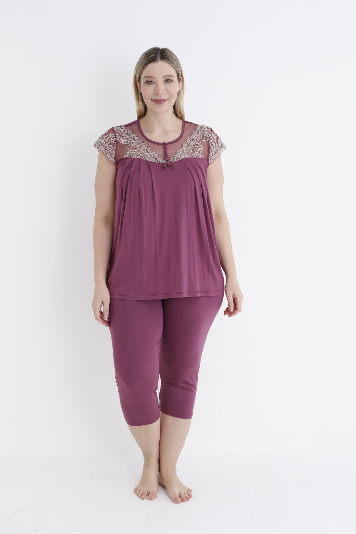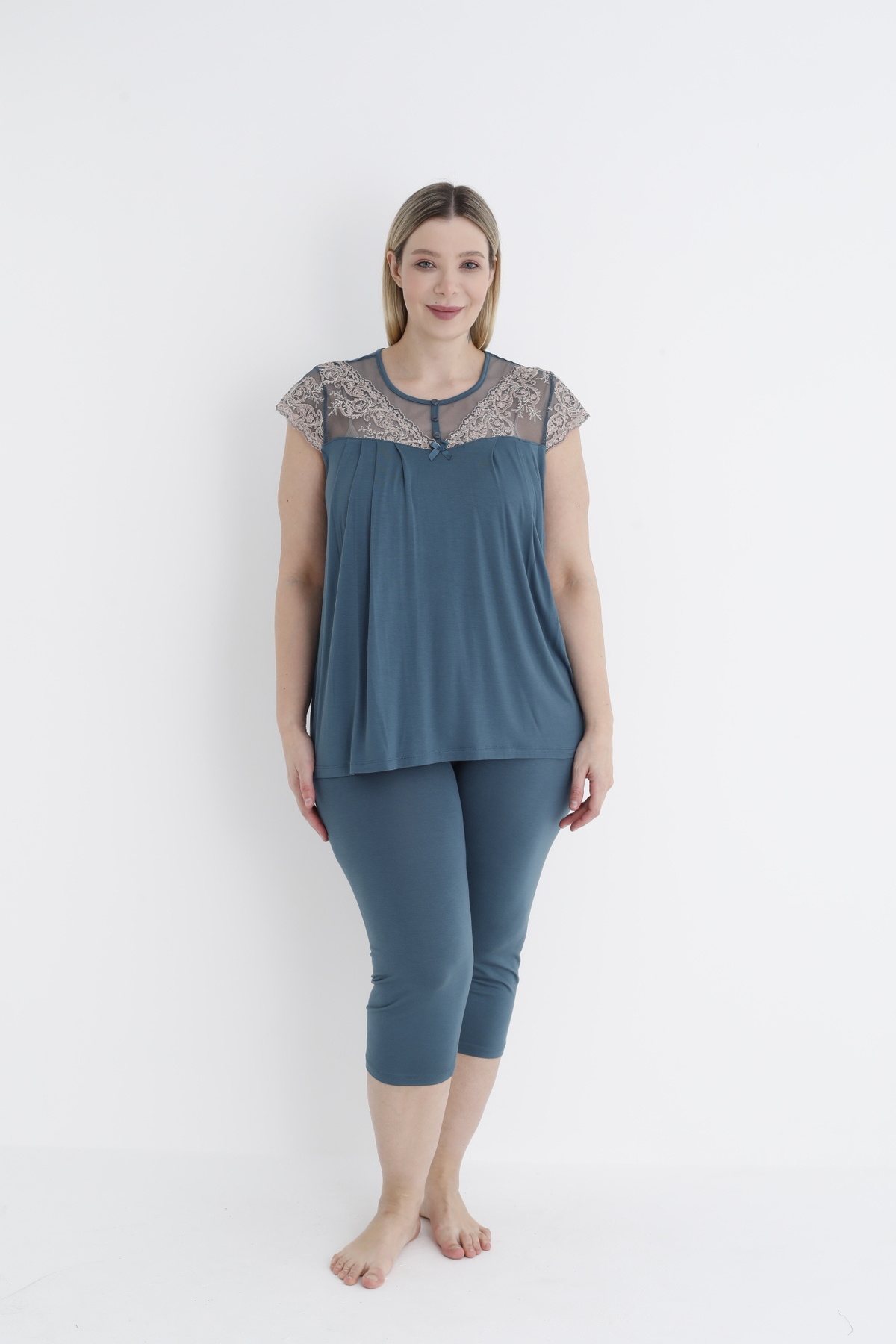 Kadın Büyük Beden Viskon Elastan Kumaş Kısa Kollu Kapri Takım 14533 Kadın Büyük Beden Viskon Elastan Kumaş Kısa Kollu Kapri Takım 14533 5XL