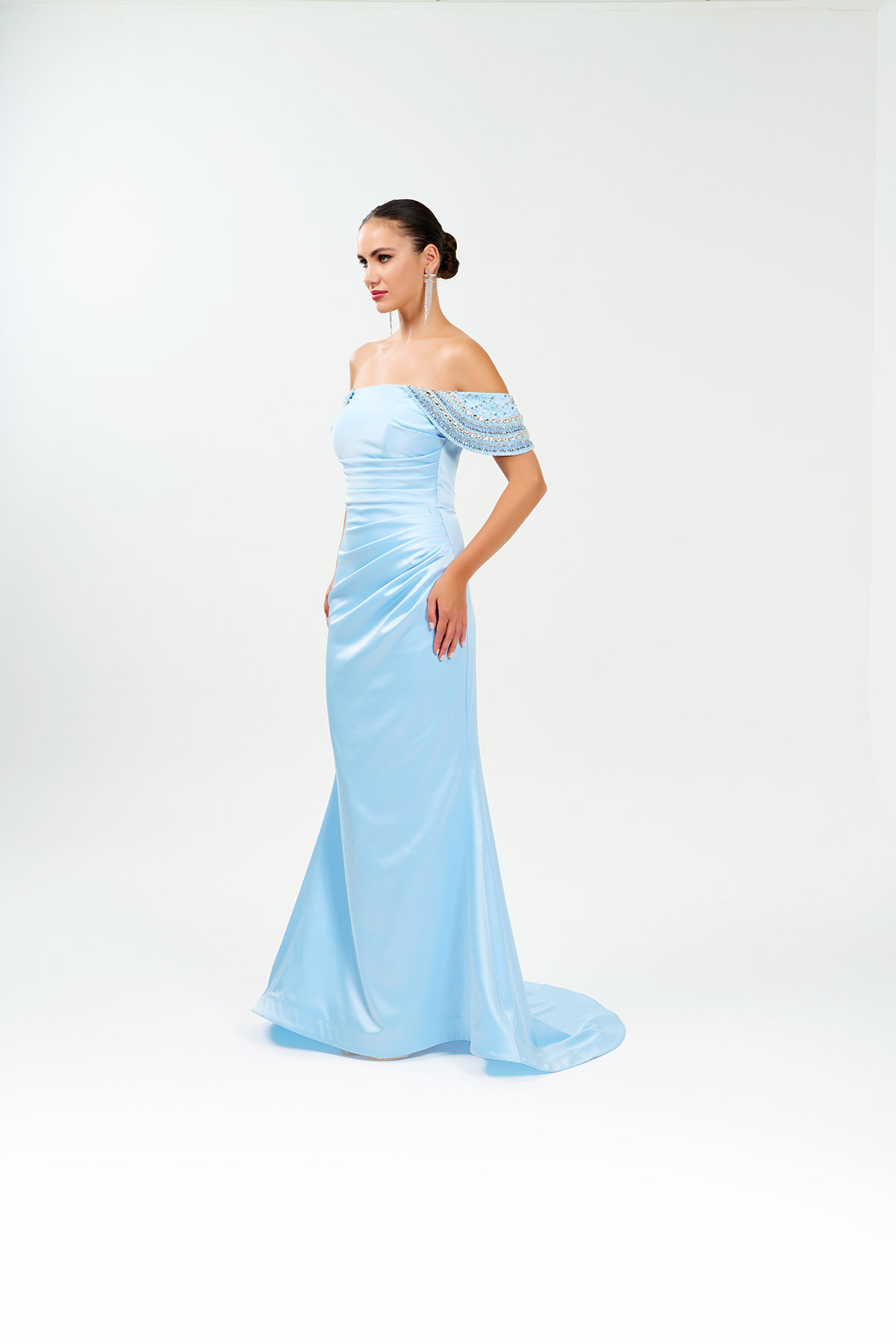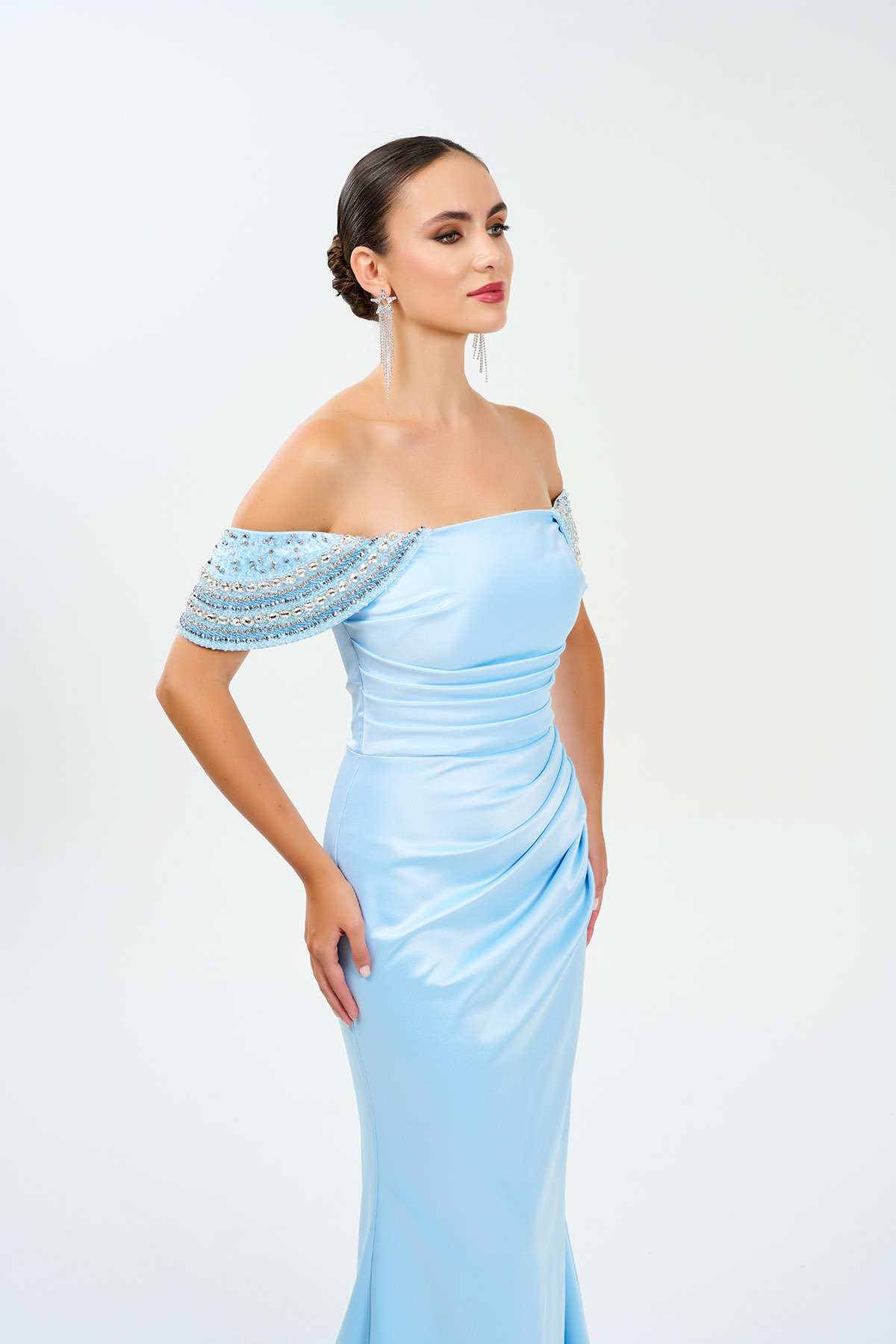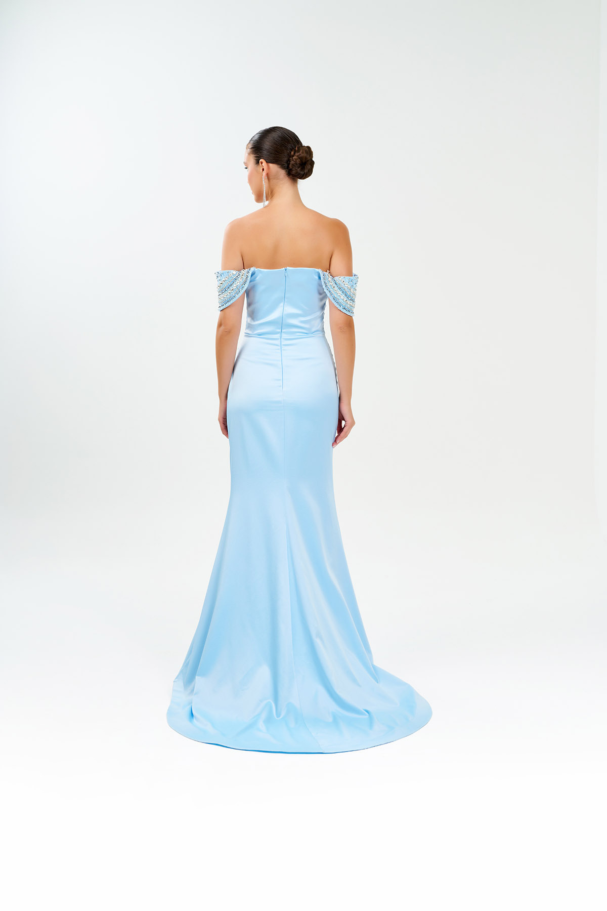 Omuzları El İşi Taşlı Saten Astarlı Abiye Elbise Omuzları El İşi Taşlı Saten Astarlı Abiye Elbise 0185 44