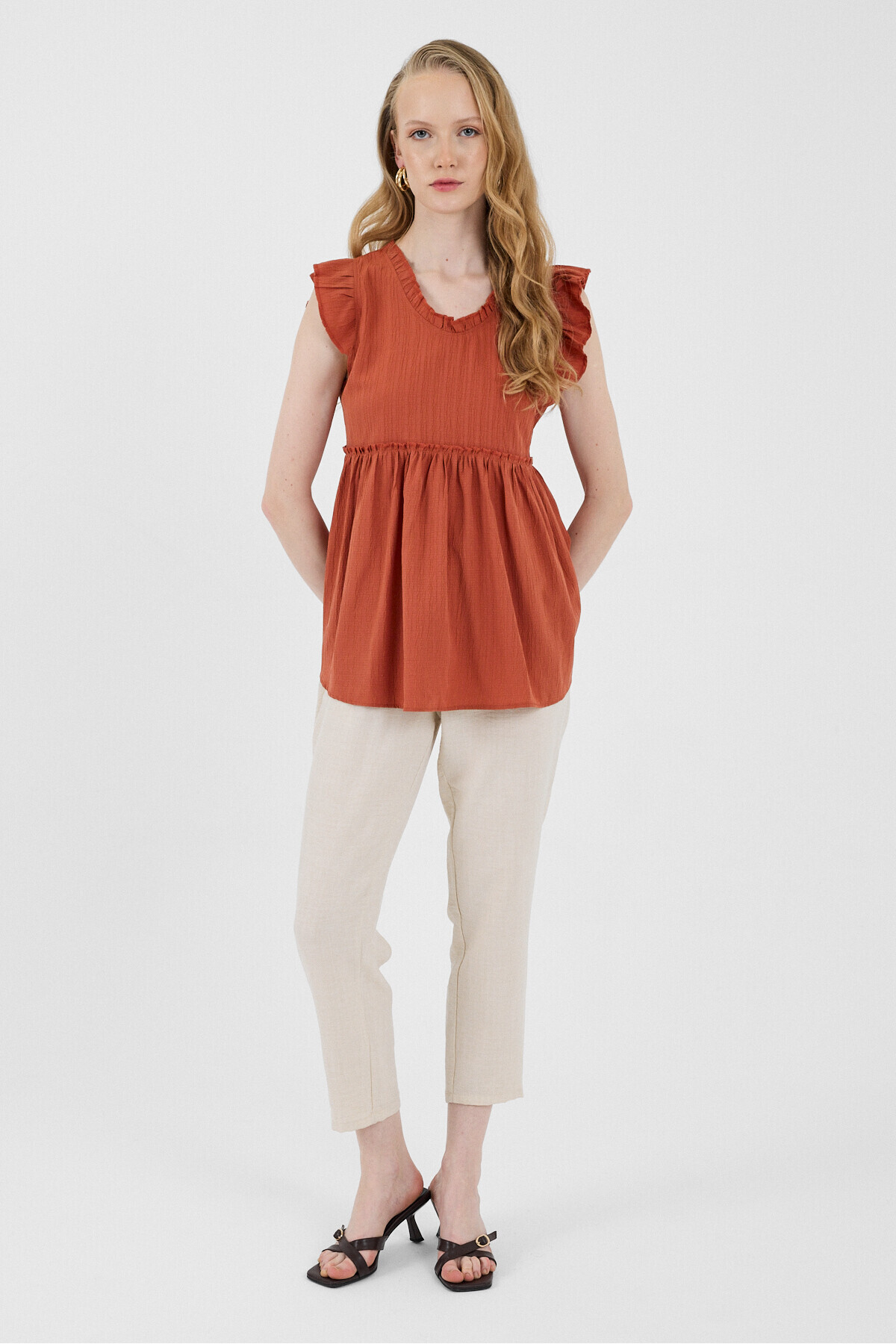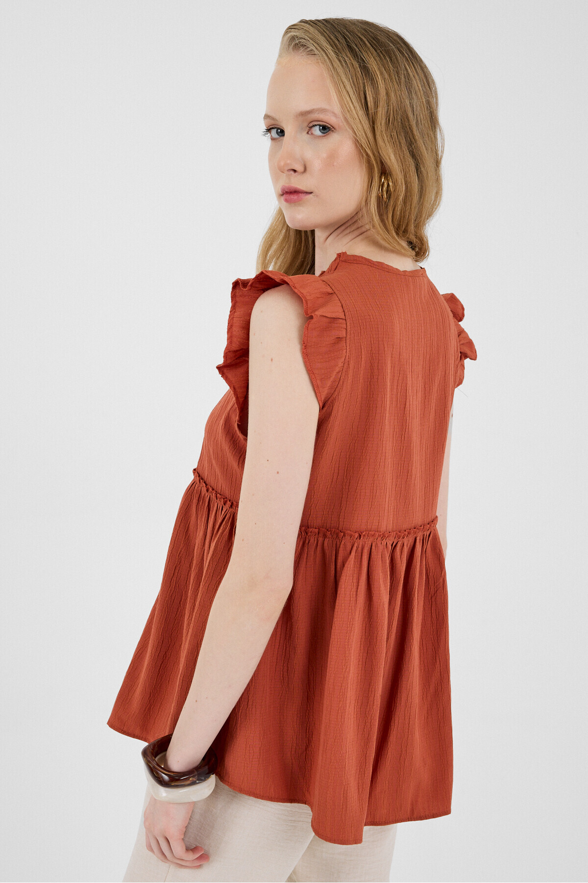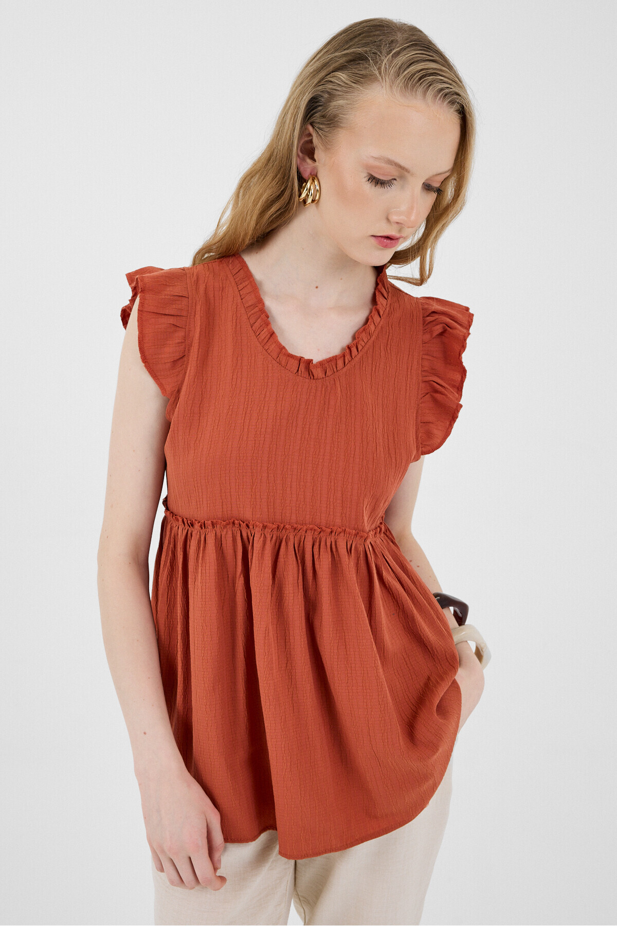 Kiremit Fırfır Kol Detaylı Bluz 8053A Kiremit Fırfır Kol Detaylı Bluz 8053A 25Y1123UST244 42