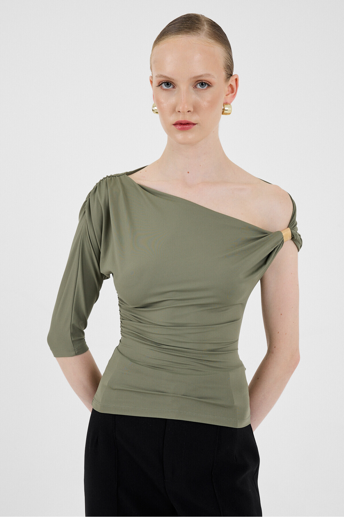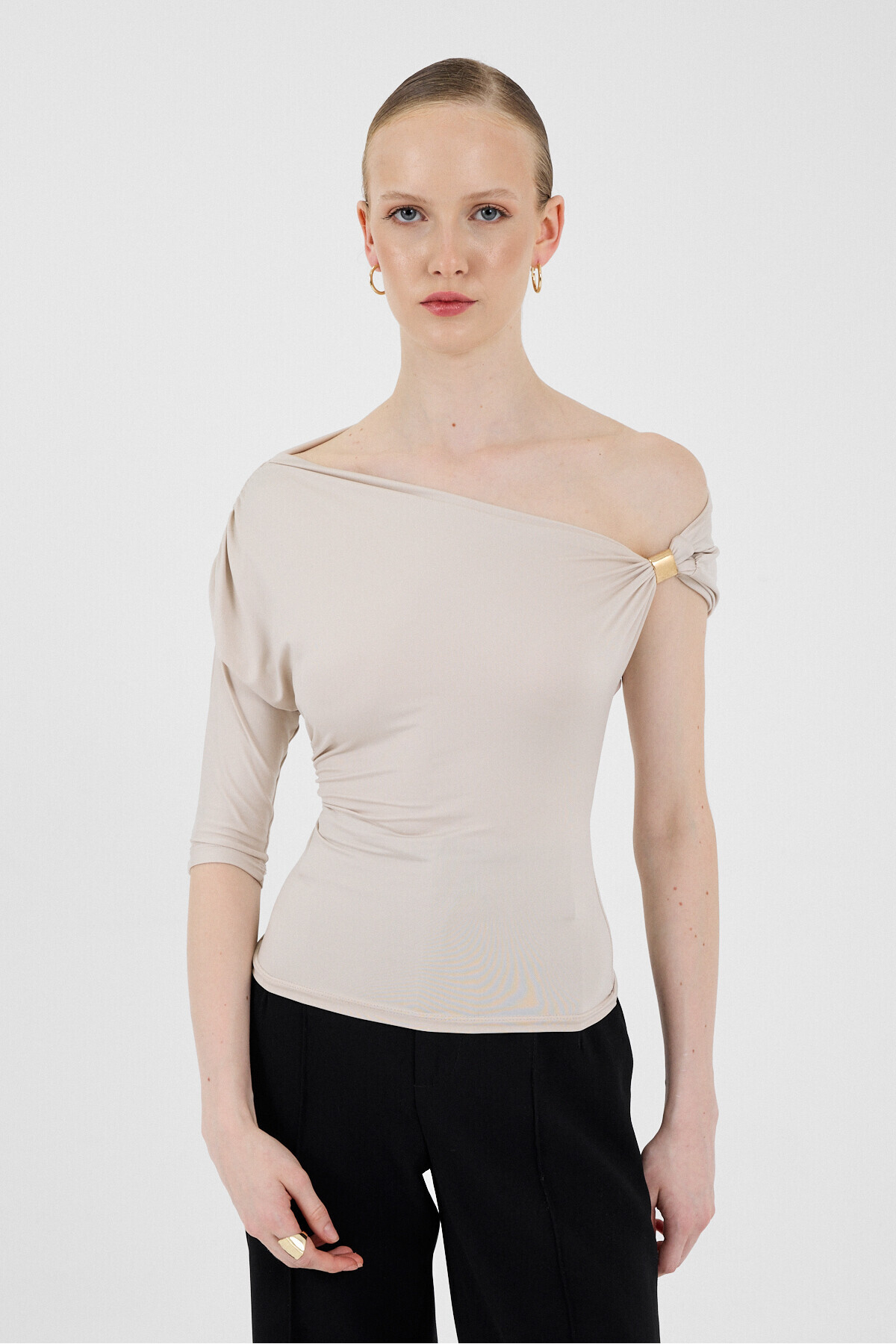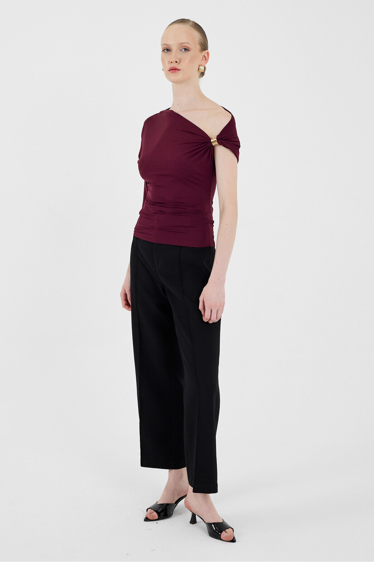 Bordo Omuz Aksesuar Detaylı Yarım Kol Bluz 2490 Bordo Omuz Aksesuar Detaylı Yarım Kol Bluz 2490 25Y1123UST233 L