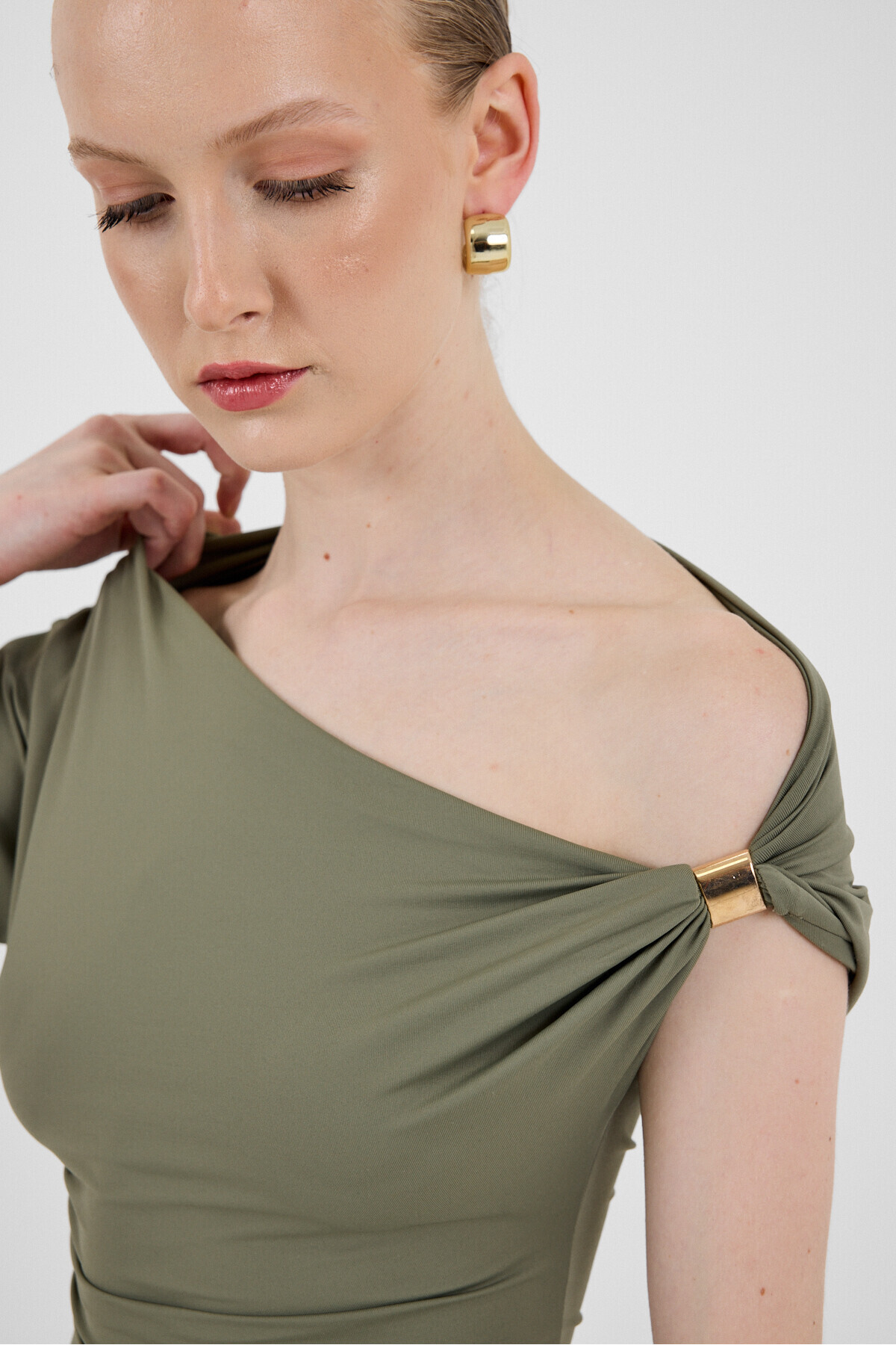 Haki Omuz Aksesuar Detaylı Yarım Kol Bluz 2490 Haki Omuz Aksesuar Detaylı Yarım Kol Bluz 2490 25Y1123UST233 L