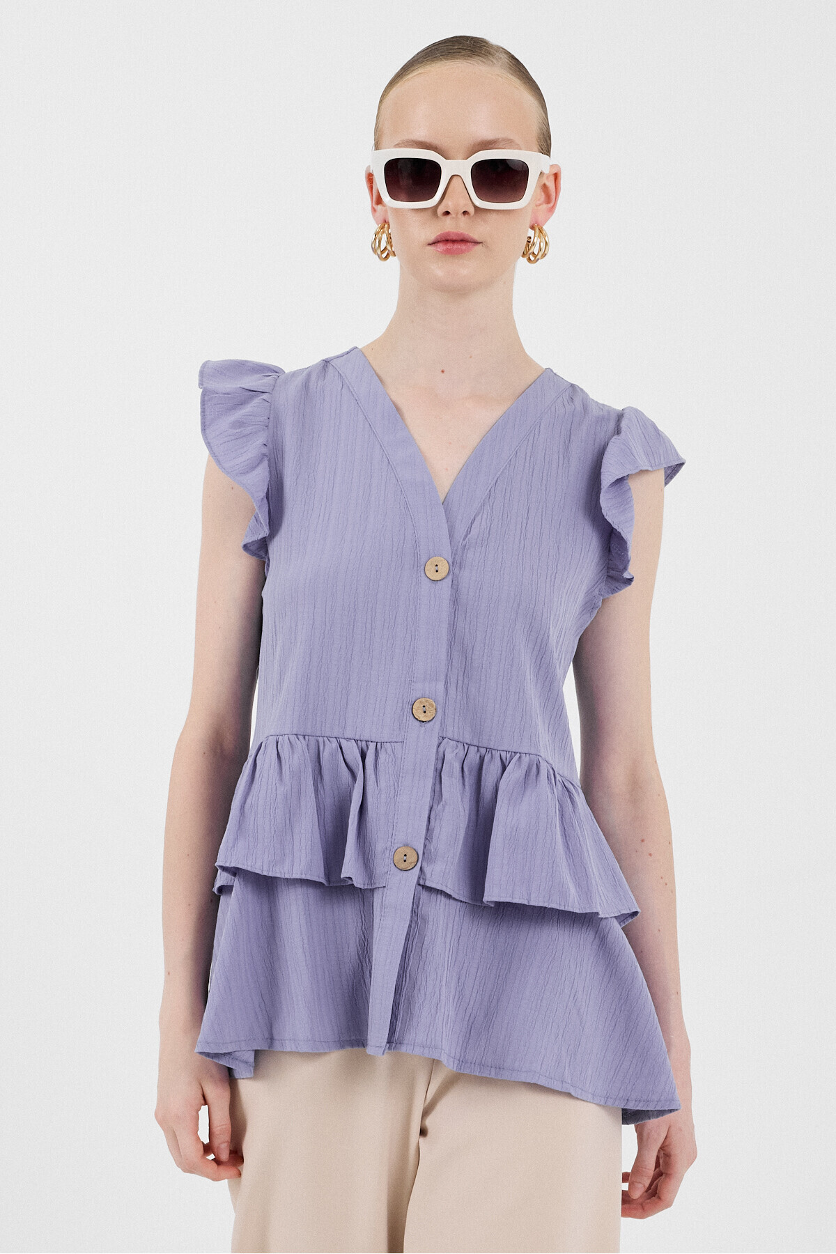 Bordo V Yaka Düğmeli Fırfır Kol Bluz 8052A Bordo V Yaka Düğmeli Fırfır Kol Bluz 8052A 25Y1123UST228 42