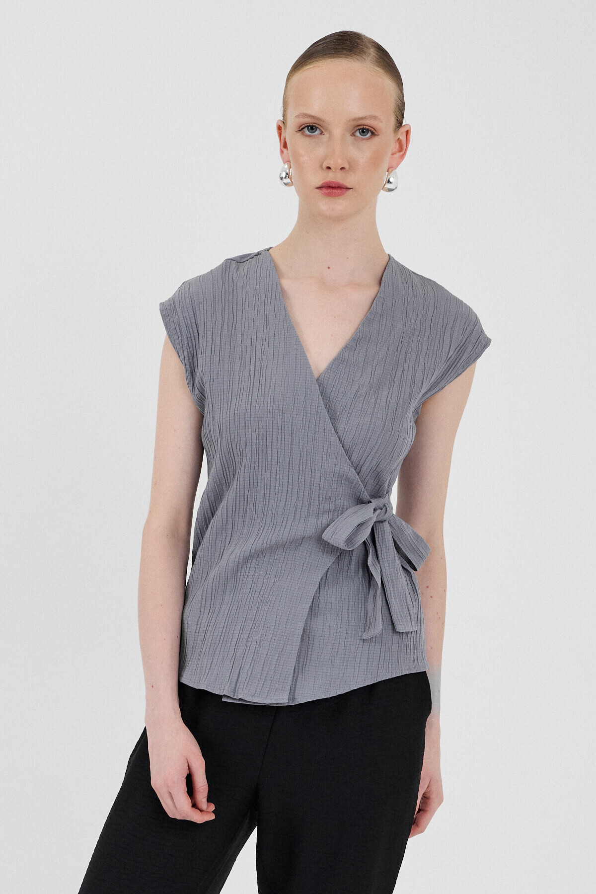 Kiremit Kruvaze Yaka Bağlama Detaylı Bluz 8025A Kiremit Kruvaze Yaka Bağlama Detaylı Bluz 8025A 25Y1123UST221 42