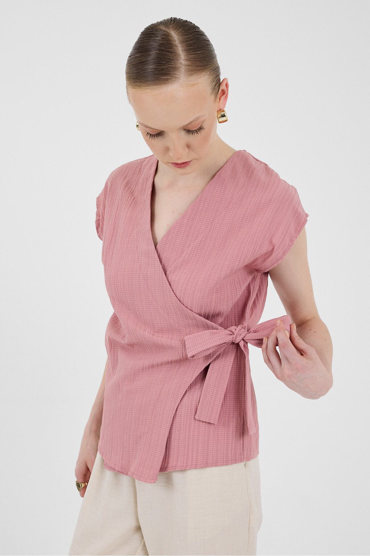 Gül Kruvaze Yaka Bağlama Detaylı Bluz 8025A Gül Kruvaze Yaka Bağlama Detaylı Bluz 8025A 25Y1123UST221 42