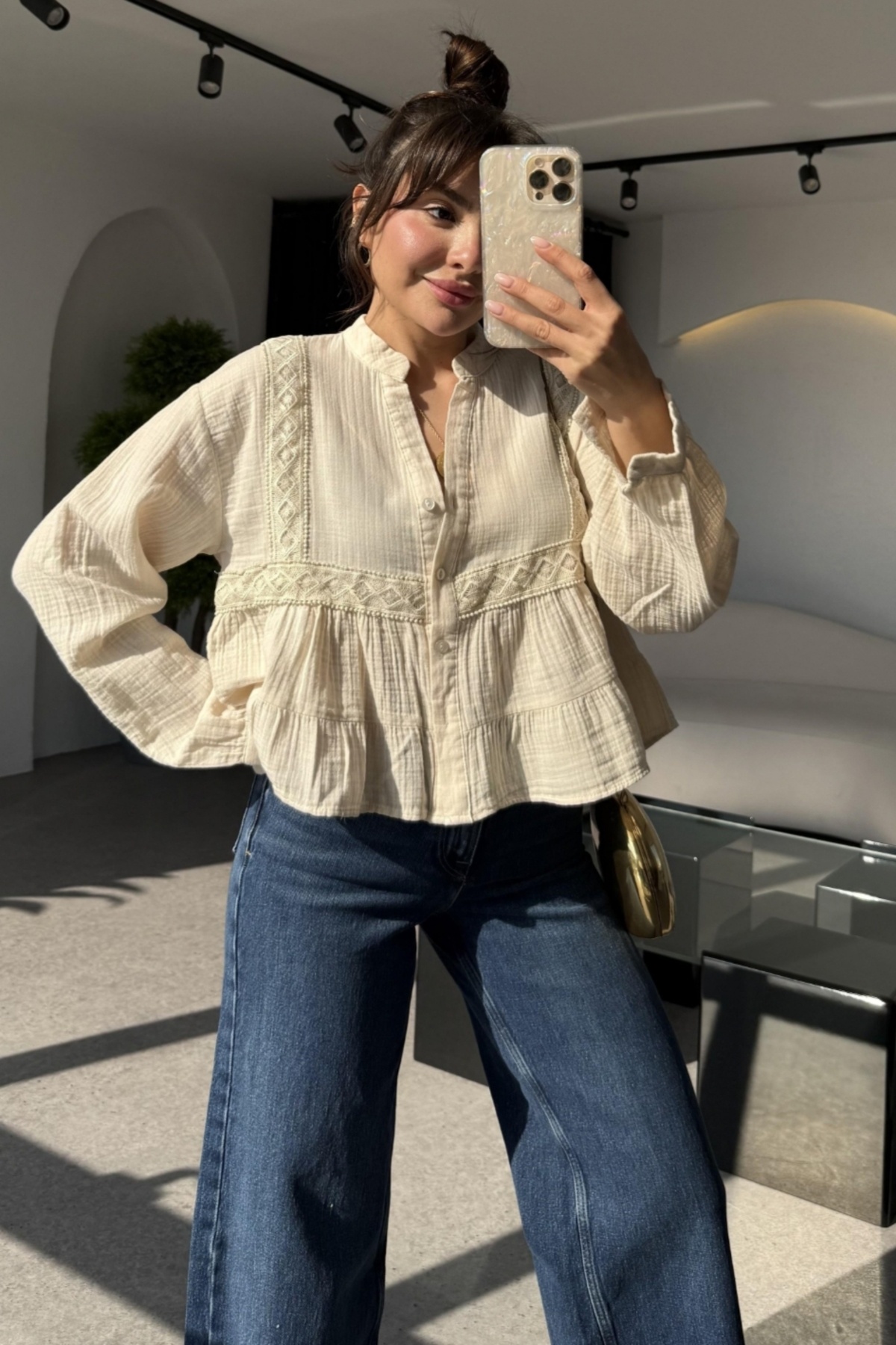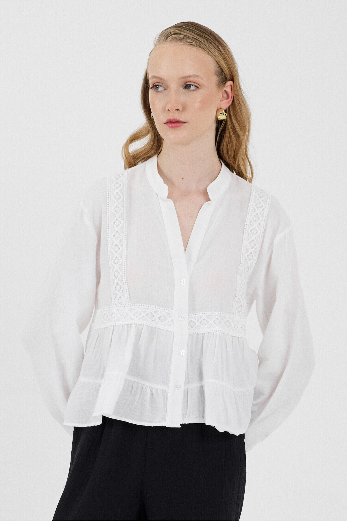 Sarı %100 Pamuk Dantel Detaylı Müslin Gömlek 4823A Sarı %100 Pamuk Dantel Detaylı Müslin Gömlek 4823A 25Y1123UST230 42