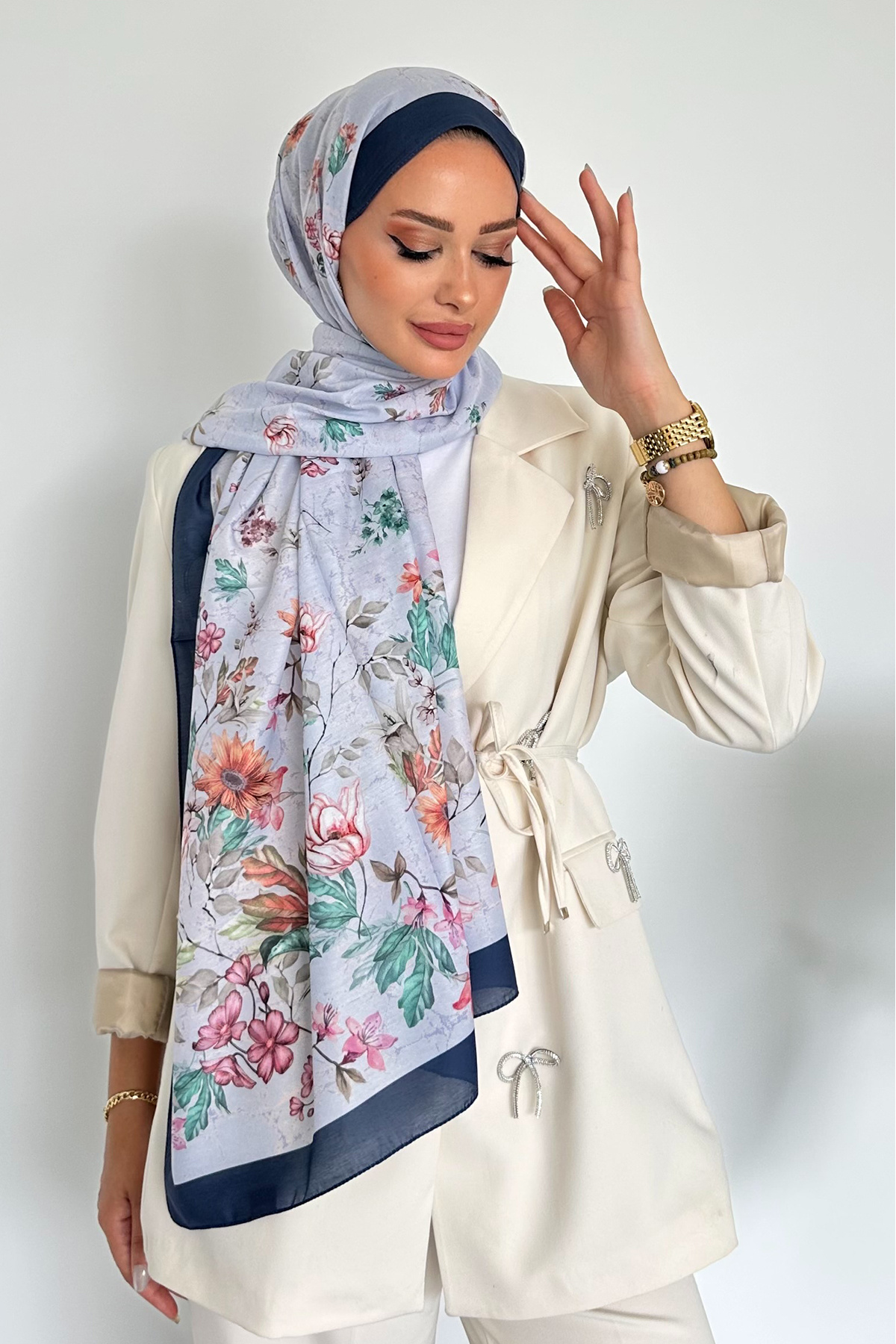 Flowers Çiçek Desenli Lacivert Renk Soft Pamuk Şal Flowers Çiçek Desenli Lacivert Renk Soft Pamuk Şal Çiçek01 75 x 190