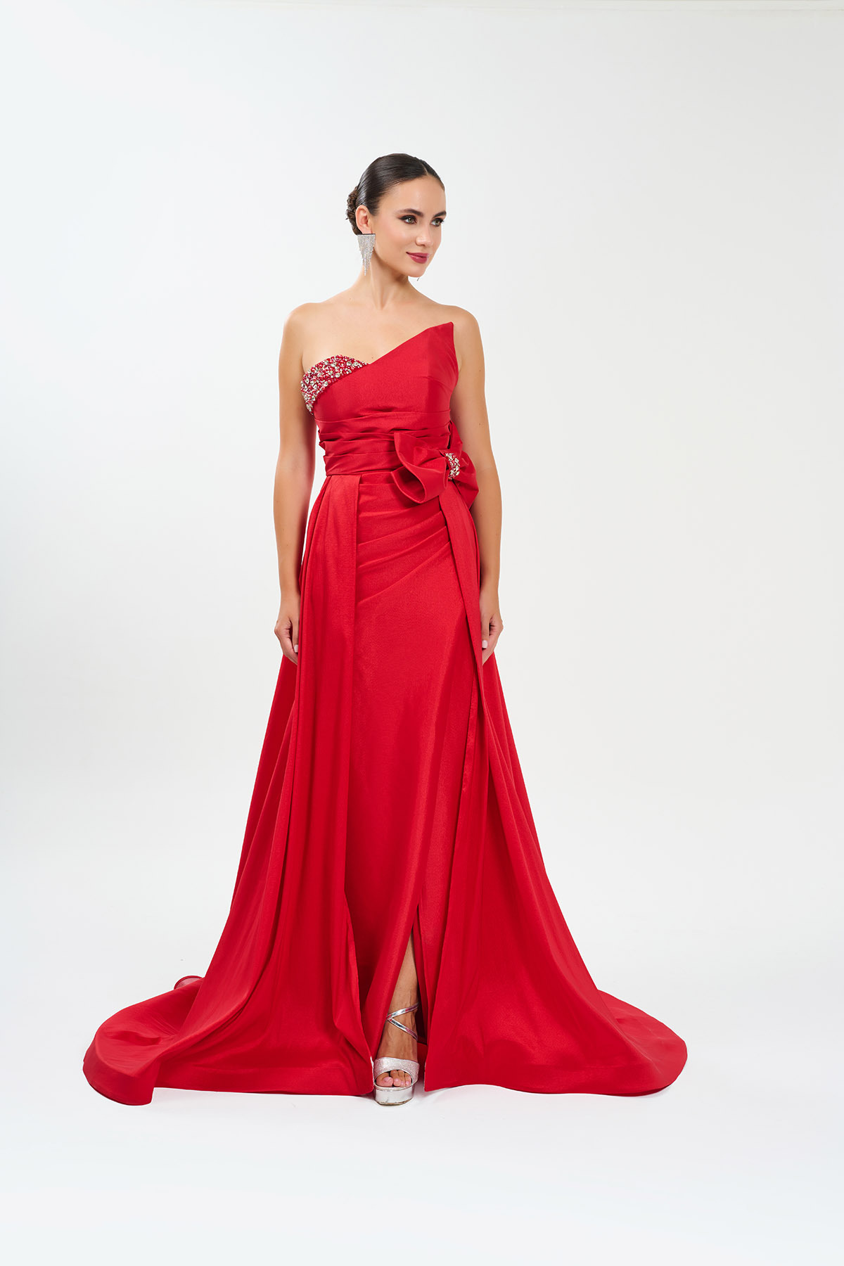 Tek Omuz Fiyonk Detaylı Tafta Kumaş El İşi Astarlı Abiye Elbise Tek Omuz Fiyonk Detaylı Tafta Kumaş El İşi Astarlı Abiye Elbise 0226 42