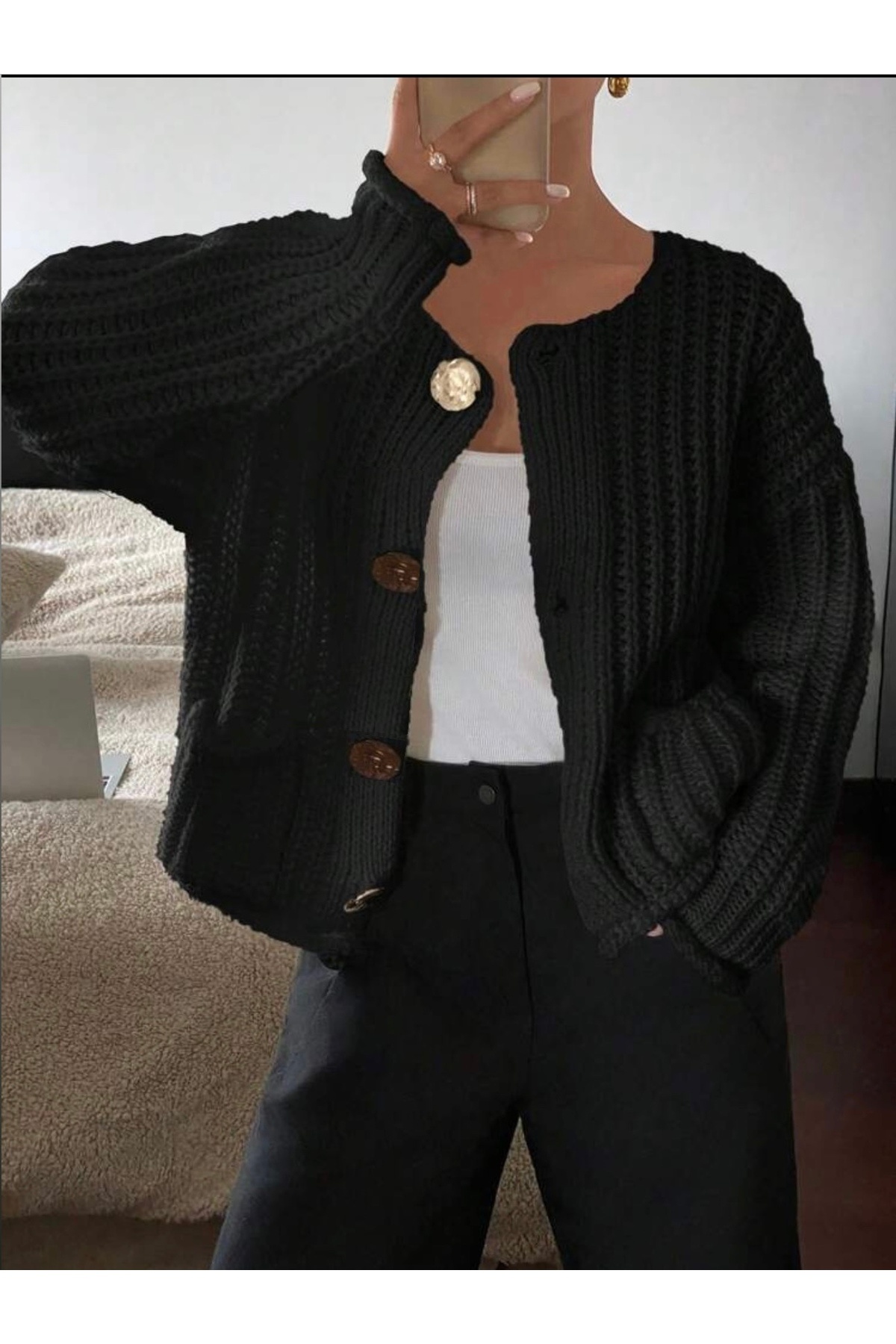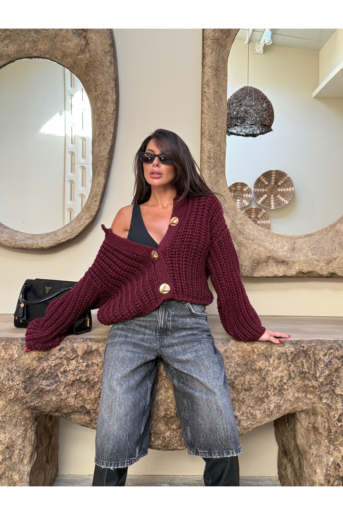 Kadın Kahverengi 4 Düğmeli Bisiklet Yaka Selanik Örgü Kaba Triko Hırka Kadın Kahverengi 4 Düğmeli Bisiklet Yaka Selanik Örgü Kaba Triko Hırka K2008 Standart