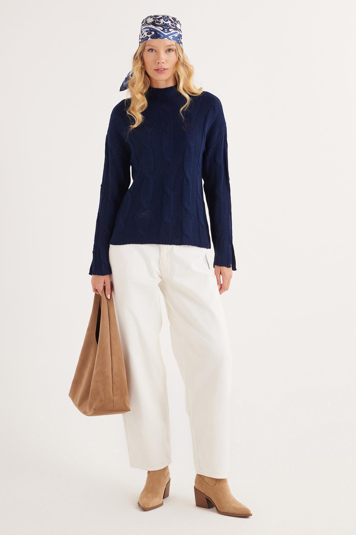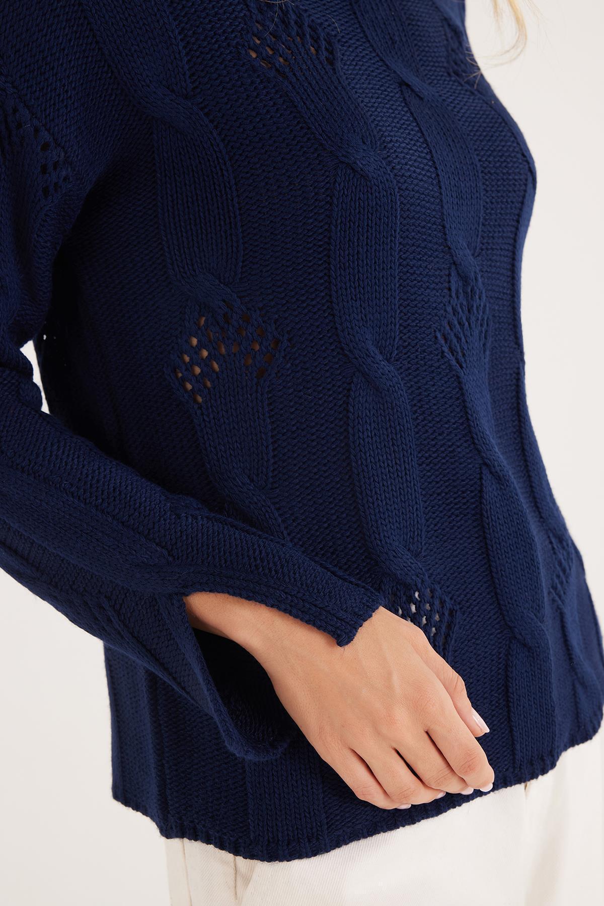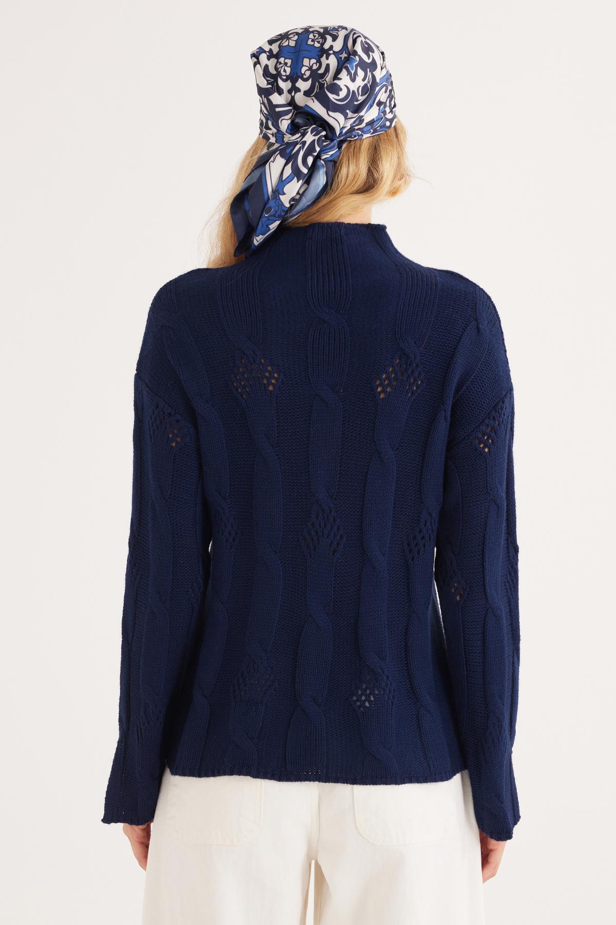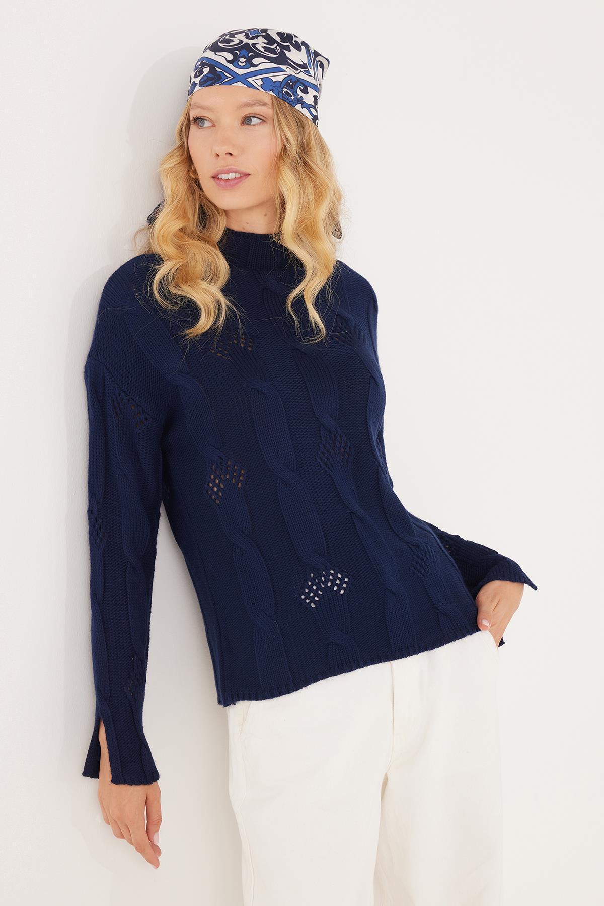 Kadın Regular Fit Klasik Kesim Yarım Balıkçı Yaka Örgü Desenli Lacivert Kazak Kadın Regular Fit Klasik Kesim Yarım Balıkçı Yaka Örgü Desenli Lacivert Kazak BYKZ2516 Standart