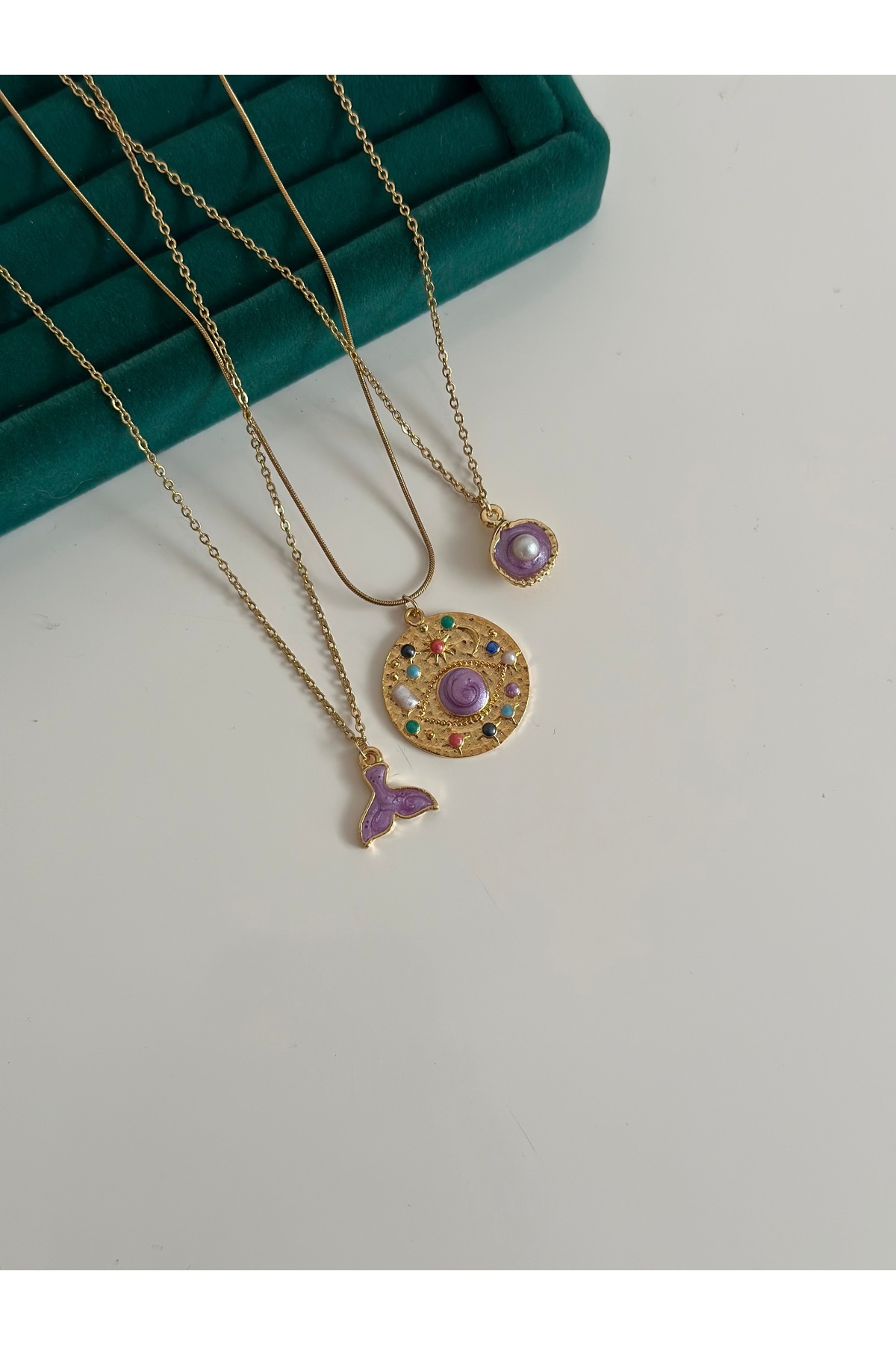 Mor İnci Üçlü Çelik Kolye Seti Mor İnci Üçlü Çelik Kolye Seti MİOSA00325 تک سایز