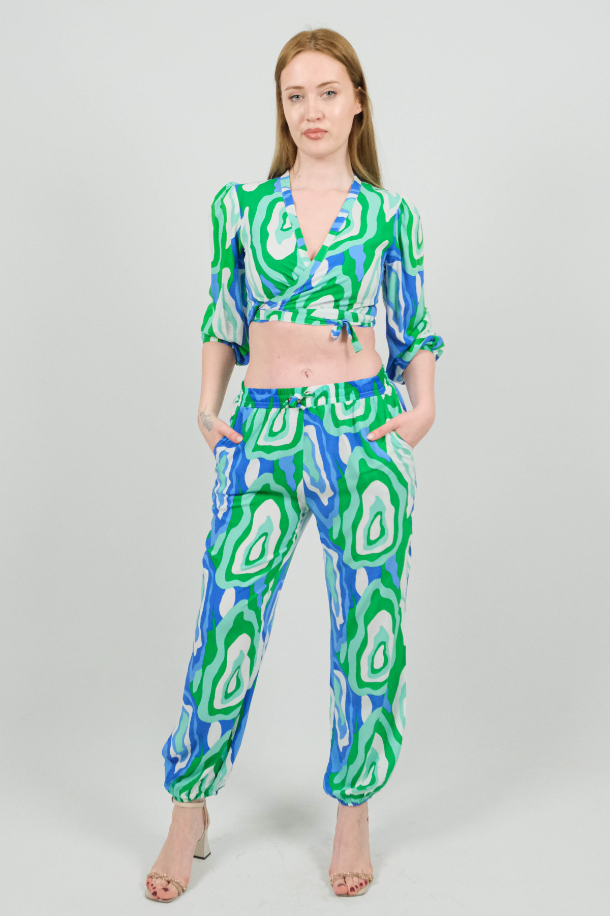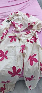 Flamlı Keten Çiçek Desen Bağlamalı Kruvaze Crop Bluz & Lastikli Paça Jogger Pantolon İkili Takım Flamlı Keten Çiçek Desen Bağlamalı Kruvaze Crop Bluz & Lastikli Paça Jogger Pantolon İkili Takım 5114-5113 XL