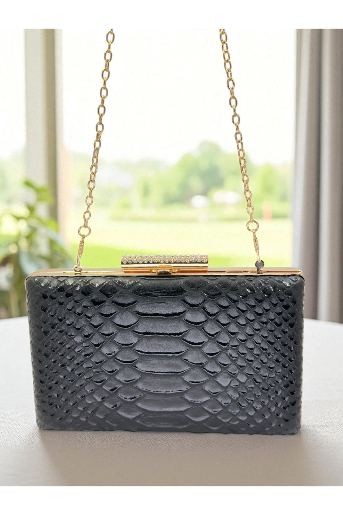 Siyah Renk Anakonda Desenli Mat Şık Ve Lüks Kadın Abiye Çanta Düğün Nişan Siyah Renk Anakonda Desenli Mat Şık Ve Lüks Kadın Abiye Çanta Düğün Nişan 135 T Anakonda تک سایز
