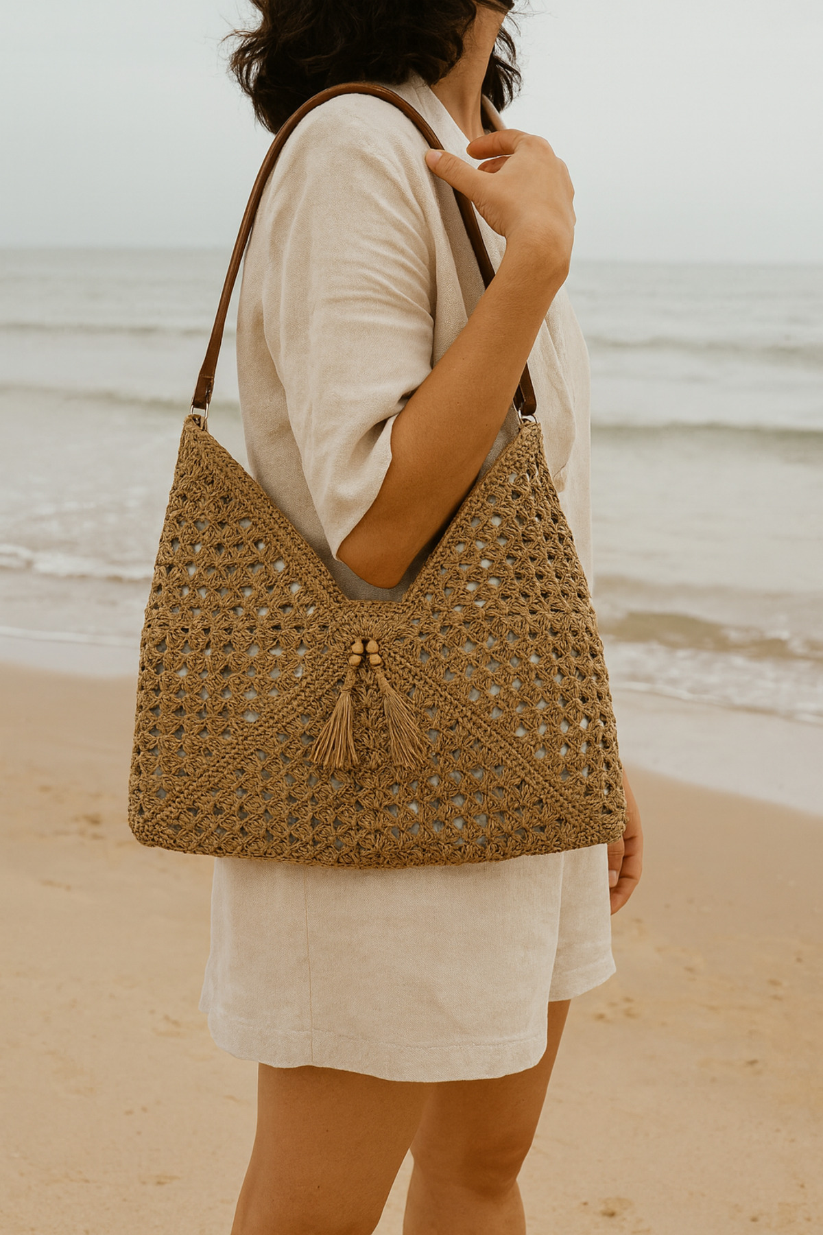 Tasarım El Örgüsü Kağıt Ip Deri Askılı Oval Kadın Omuz ve El Çantası ( Orta Boy) Tasarım El Örgüsü Kağıt Ip Deri Askılı Oval Kadın Omuz ve El Çantası ( Orta Boy) VBM05 تک سایز